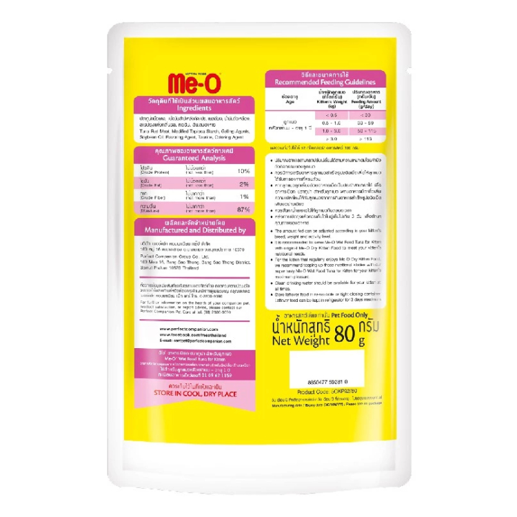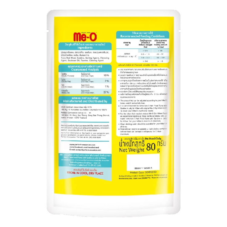 Me-O อาหารเปียก มีโอ ลูกแมว สูตร ปลา ทูน่า ซาร์ดีน ไก่ เยลลี่ ขนาด 80 กรัม 12 ซอง คละได้