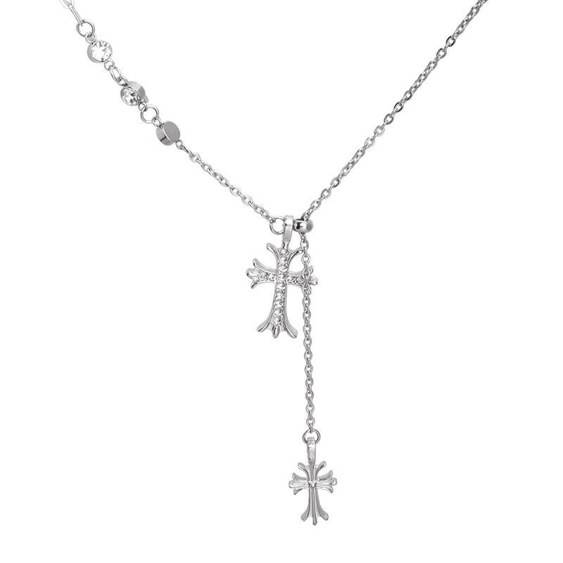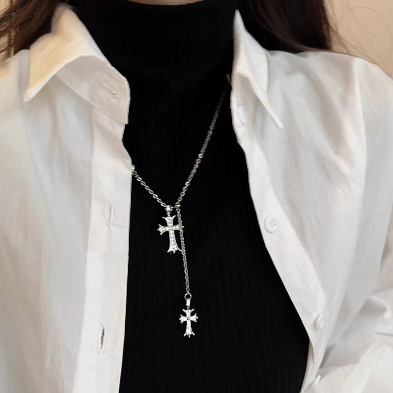 จี้ไม้กางเขนคู่ สร้อยคอน่ารักสไตล์ยุค Y2K สำหรับวันหยุด งานปาร์ตี้ และคอนเสิร์ต