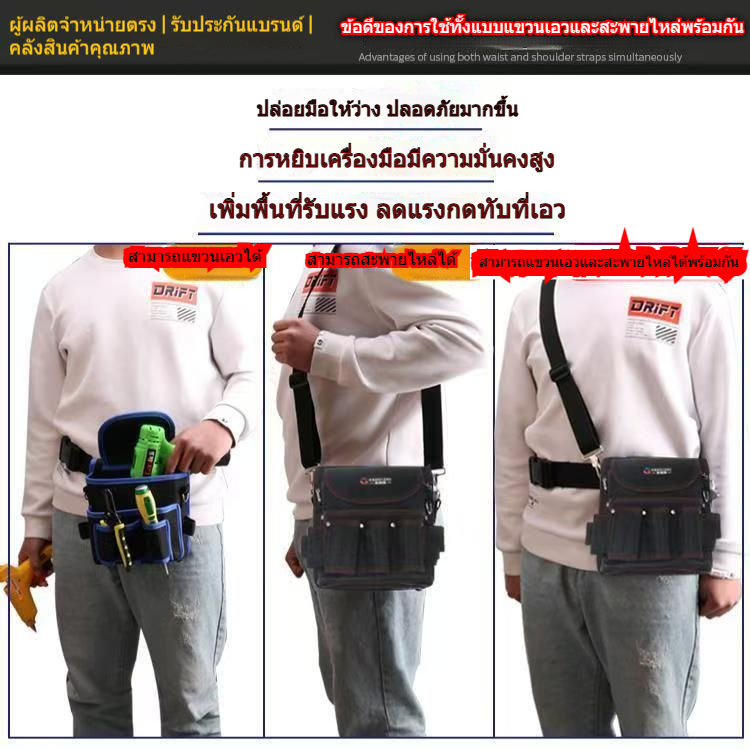เครื่องมืออเนกประสงค์ เอวกระเป๋าเครื่องมือซ่อมฮาร์ดแวร์ กระเป๋าคาดเอวไฟฟ้างานไม้ไหล่กระเป๋าสะพาย