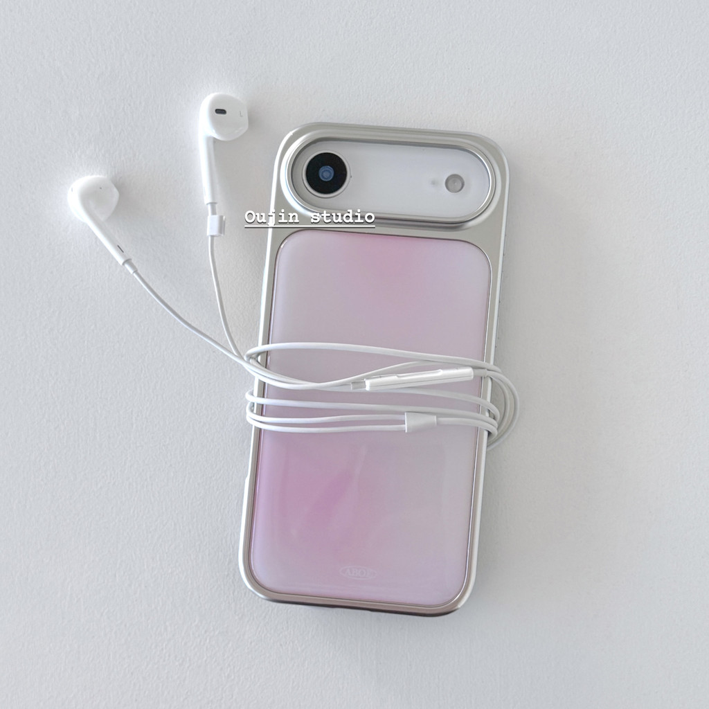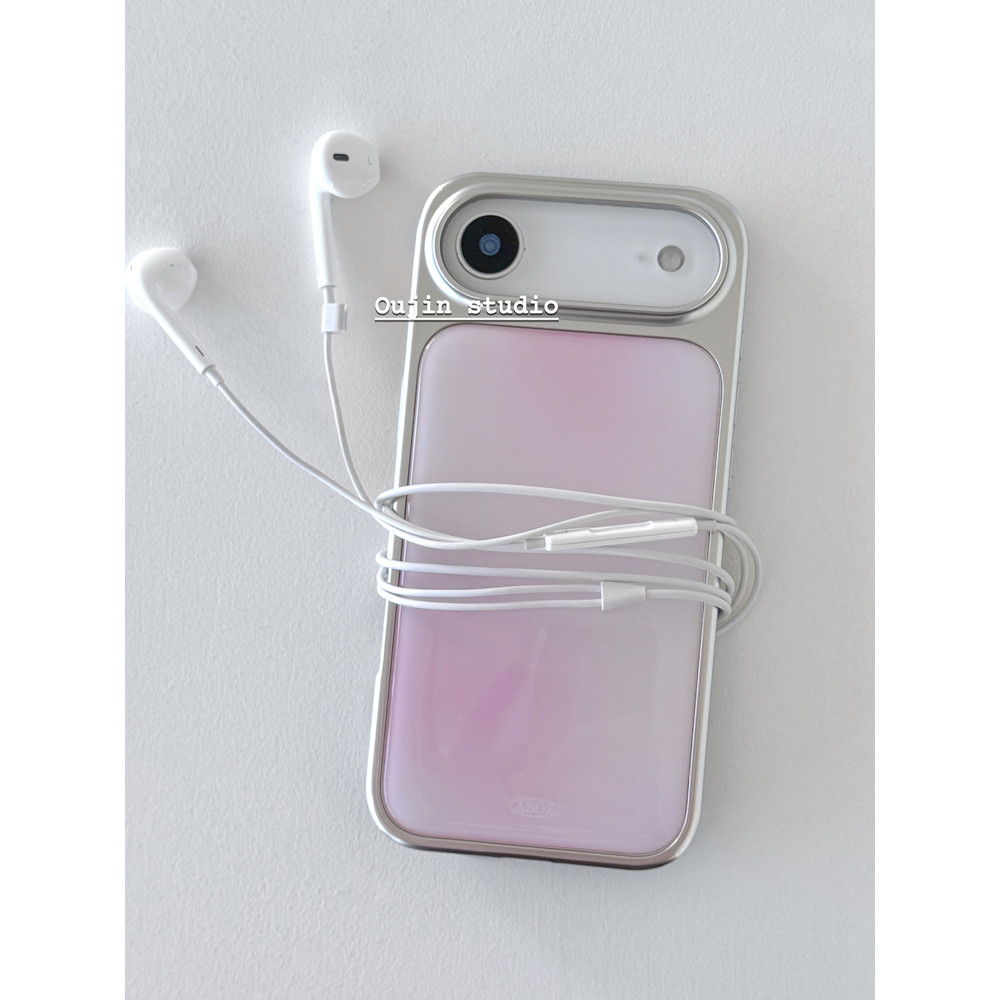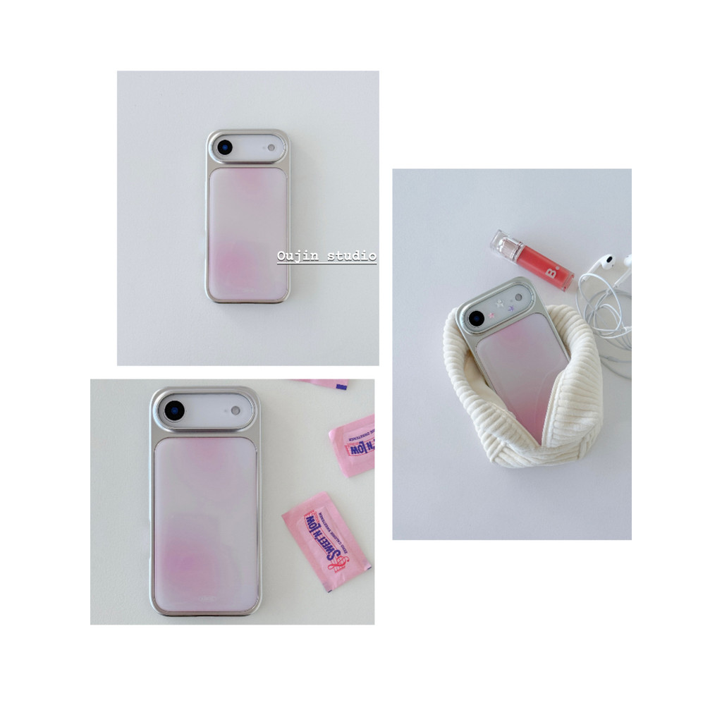 สไตล์เกาหลีสไตล์อินการออกแบบเฉพาะที่เรียบง่ายไล่โทนสีสีอารมณ์ระดับไฮเอนด์สาวบลัชรอยเปื้อน17/16/15โปรแม็กซ์/14กันกระแทกรวมทุกอย่างขอบขอบขอบเงินอีพ็อกซี่กรณีป้อง