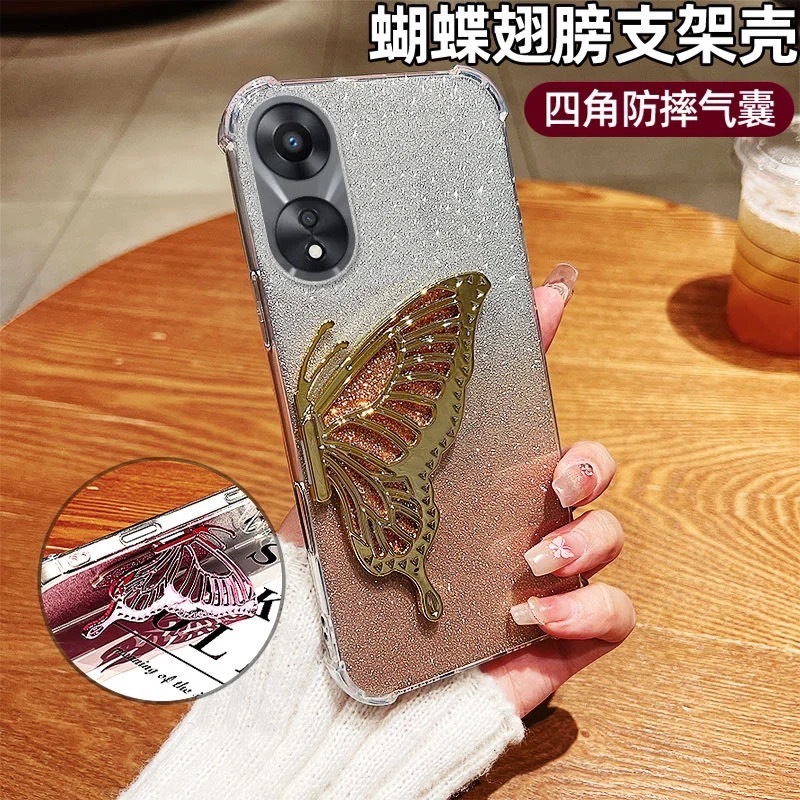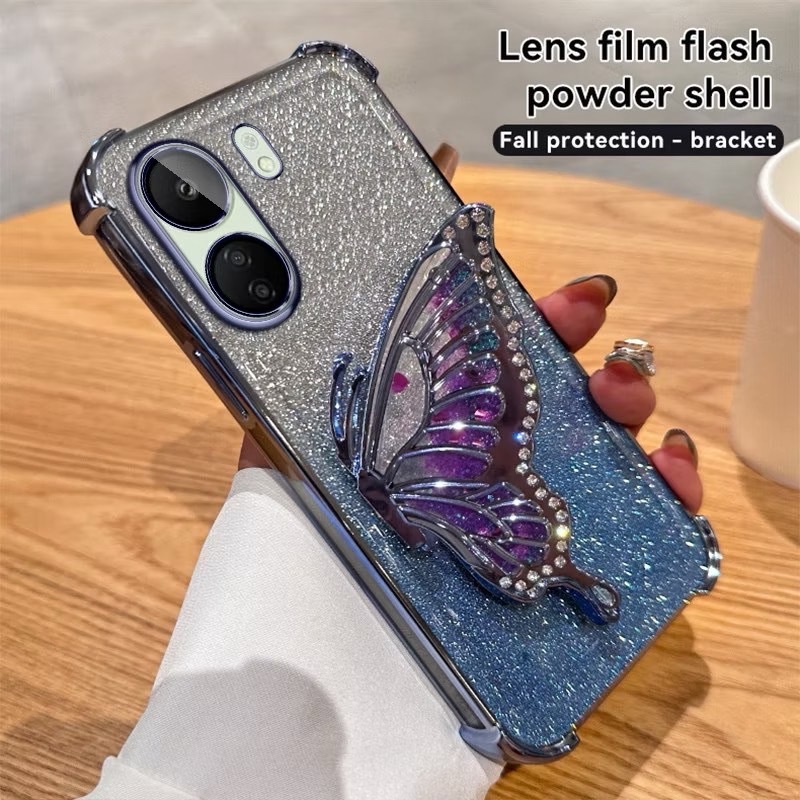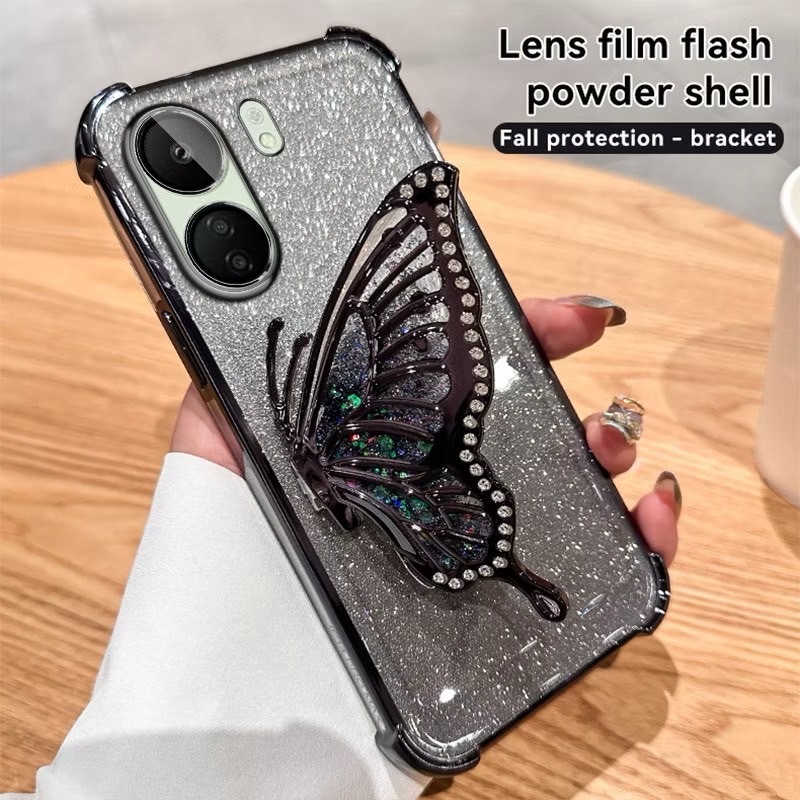 เคสโทรศัพท์ กริตเตอร์ หรูหรา สำหรับรุ่น Xiaomi Redmi A5 Poco C71 เคส กันกระแทกมุม ป้องกันกล้อง ผีเสื้อ น่ารัก ตั้งได้