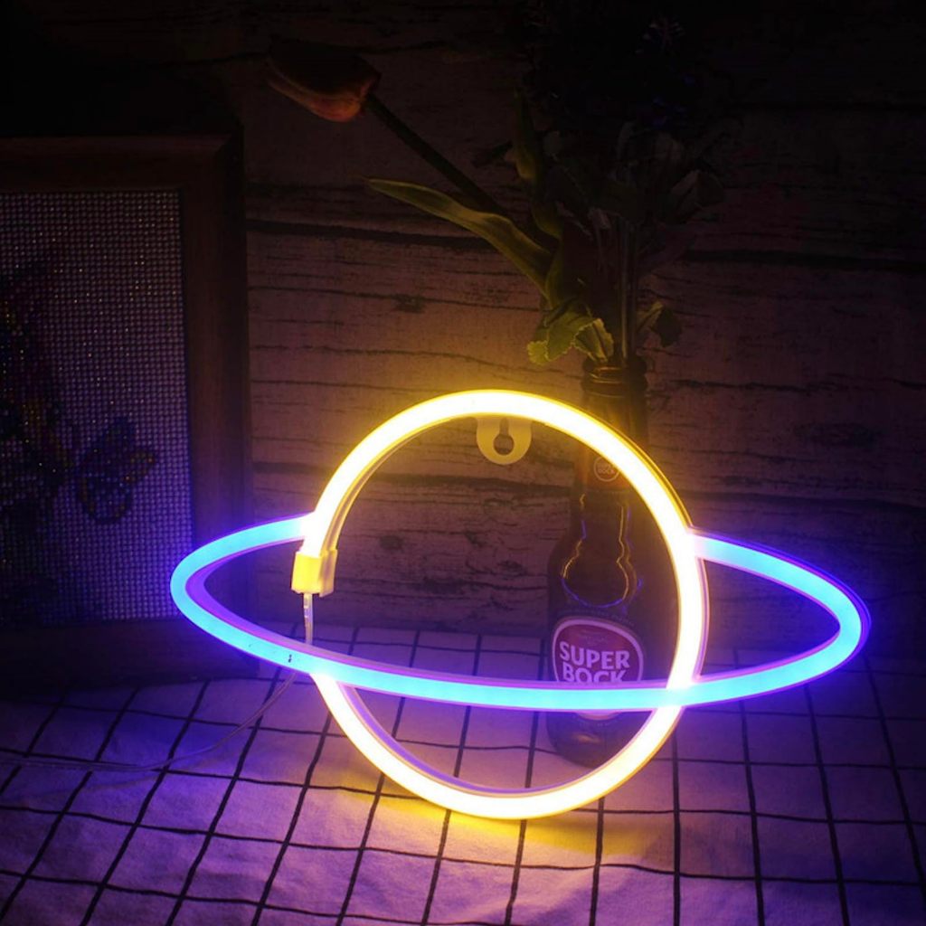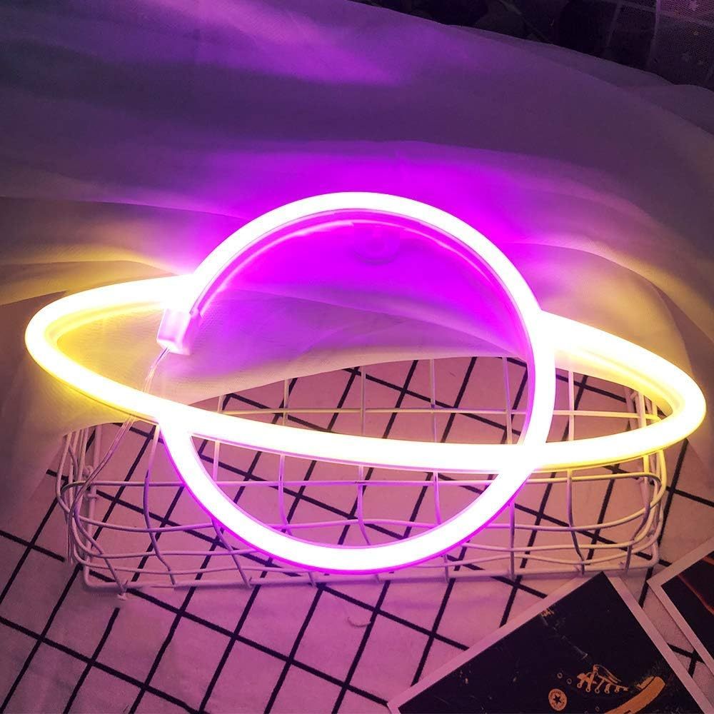 • หลอดไฟ LED ไฟนีออนรูปดาวเสาร์ เหมาะสำหรับ ตกแต่งห้องนอนห้องนั่งเล่น วางจัดในงานปาร์ตี้ต่างๆ สามารถแขวนบนผนังหรือวางบนโต๊ะเพื่อความน่ารักโรแมนติกได้เป็นอย่างดี