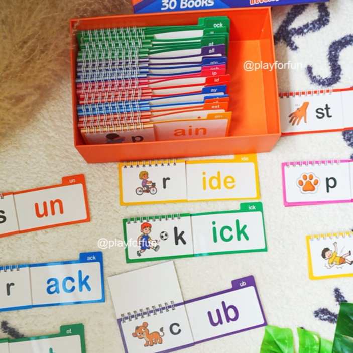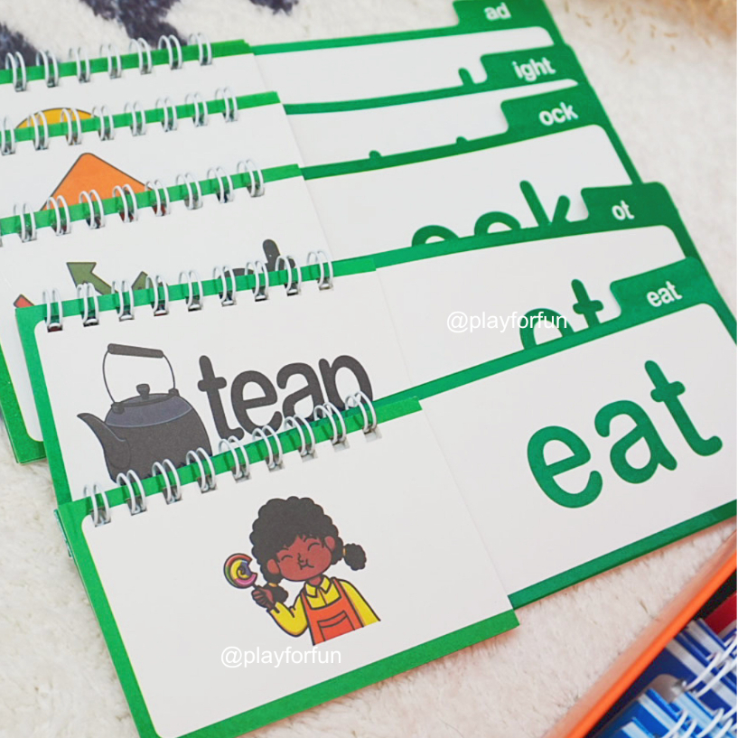 เด็กๆ จะได้ฝึกอ่านคำคล้องเสียง เช่น cat–bat–hat และอีกมากกว่า 90 คำ