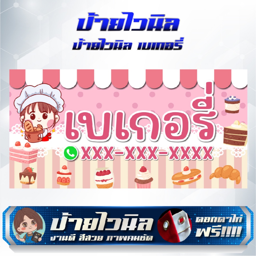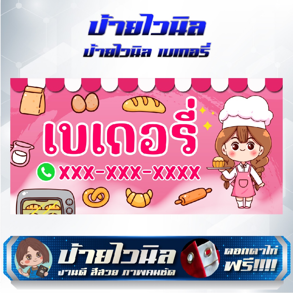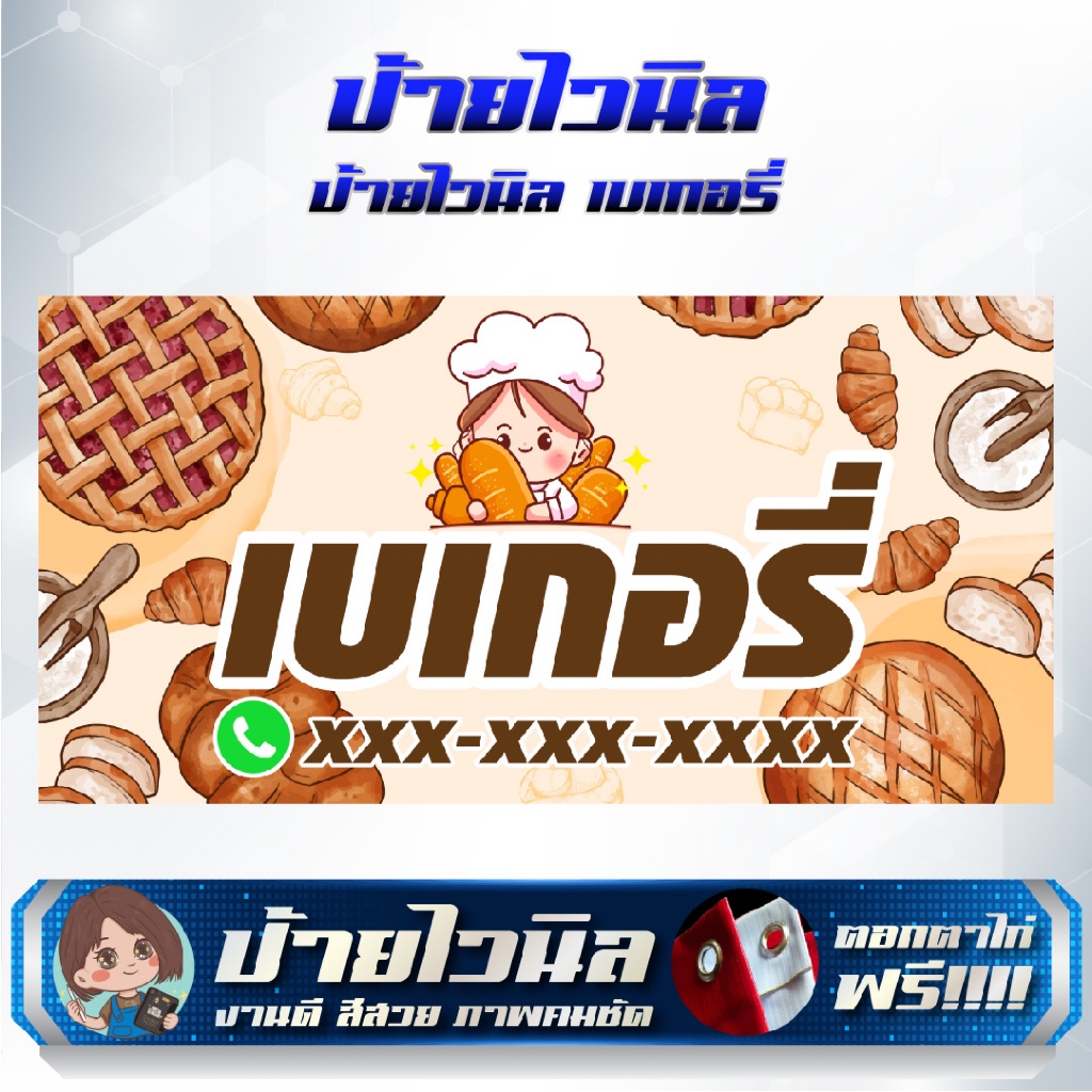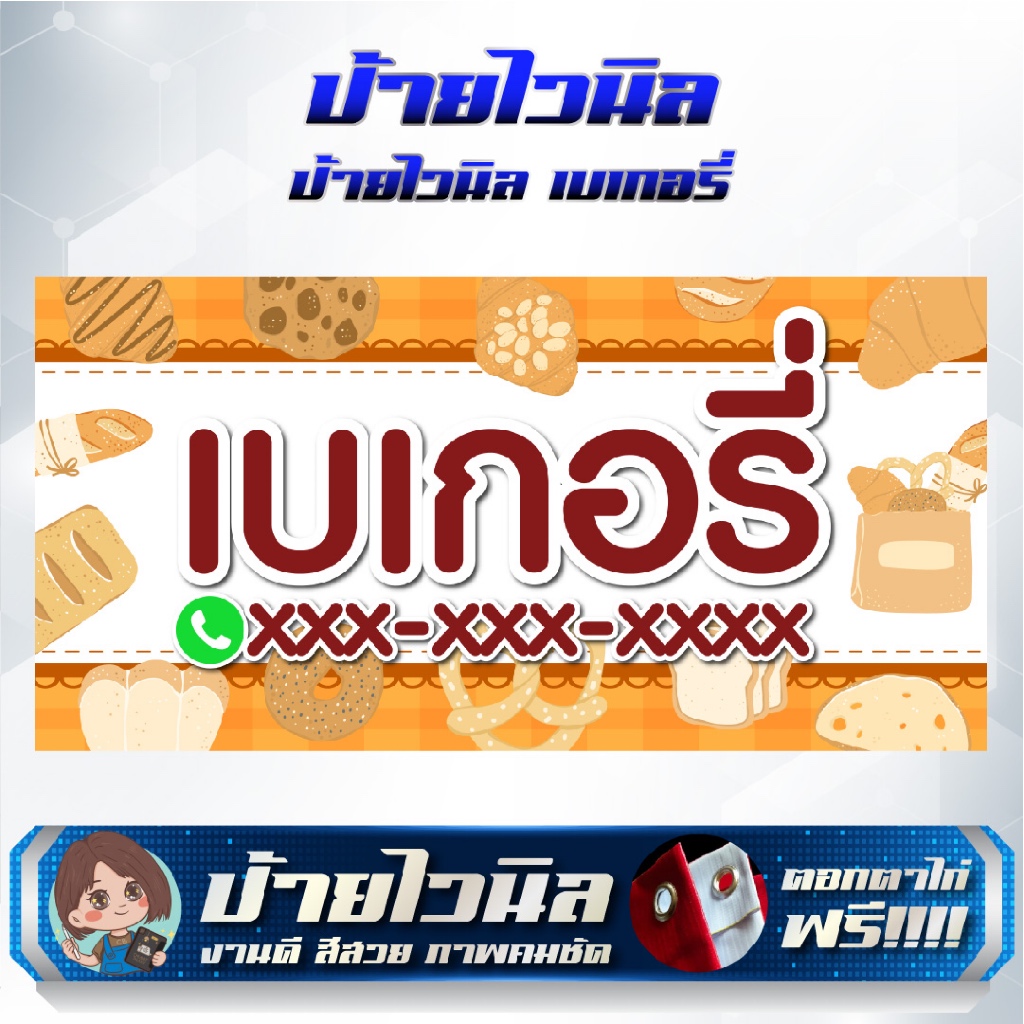 ป้ายไวนิลร้านเบเกอรี่ ขนมปัง แก้ไขข้อความได้