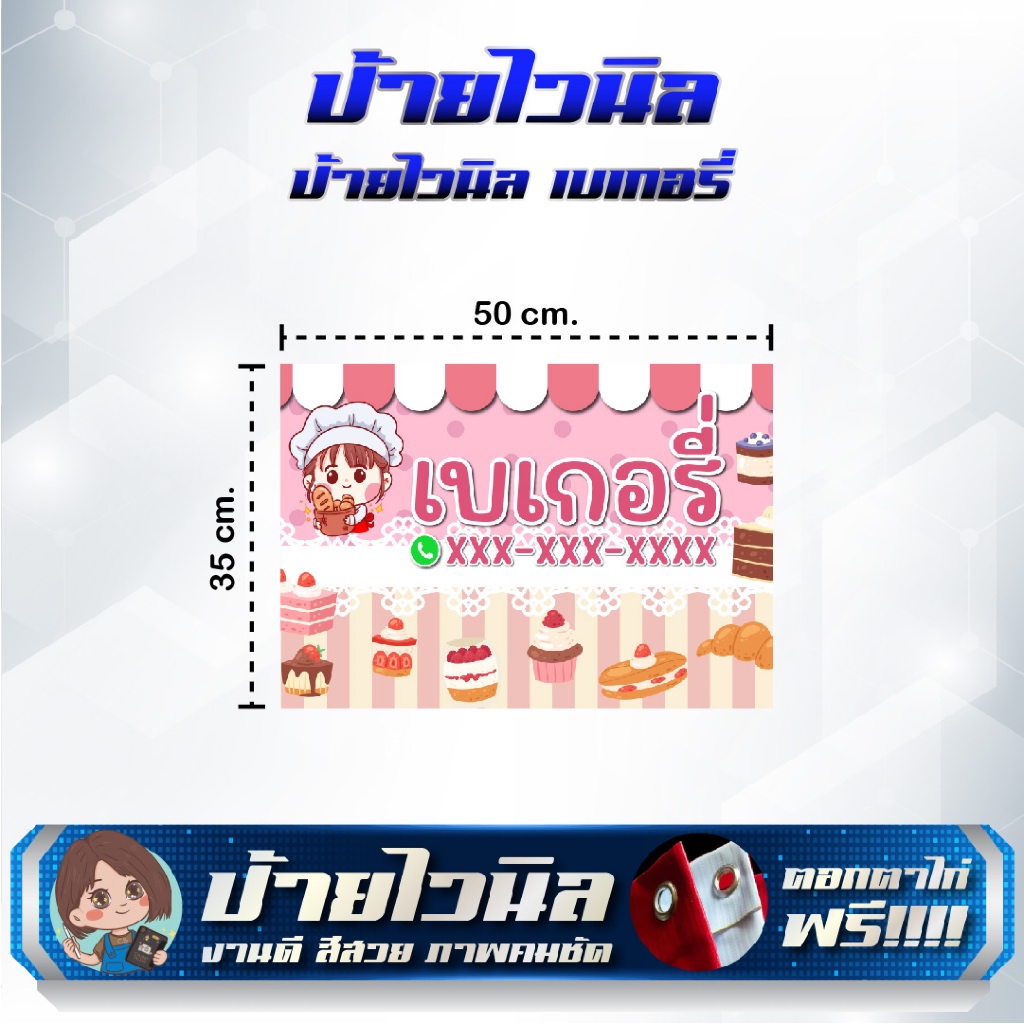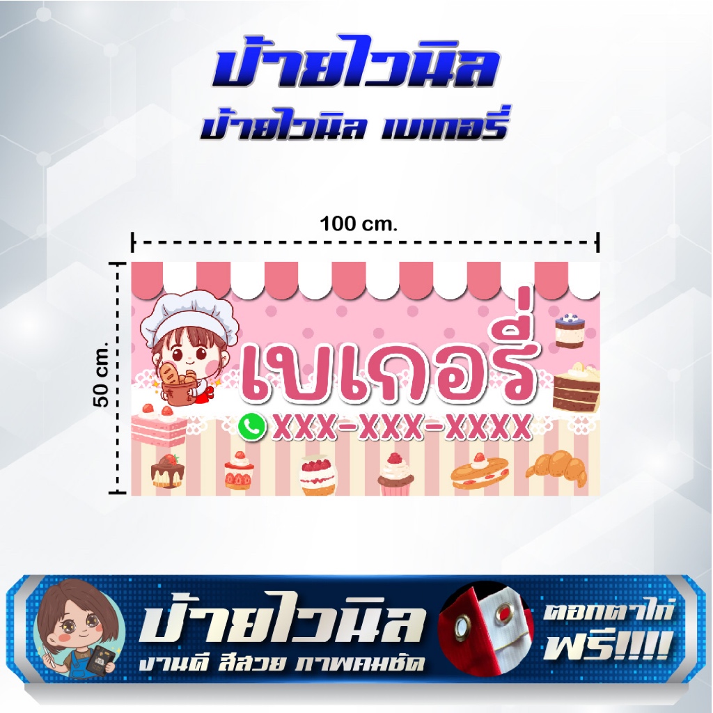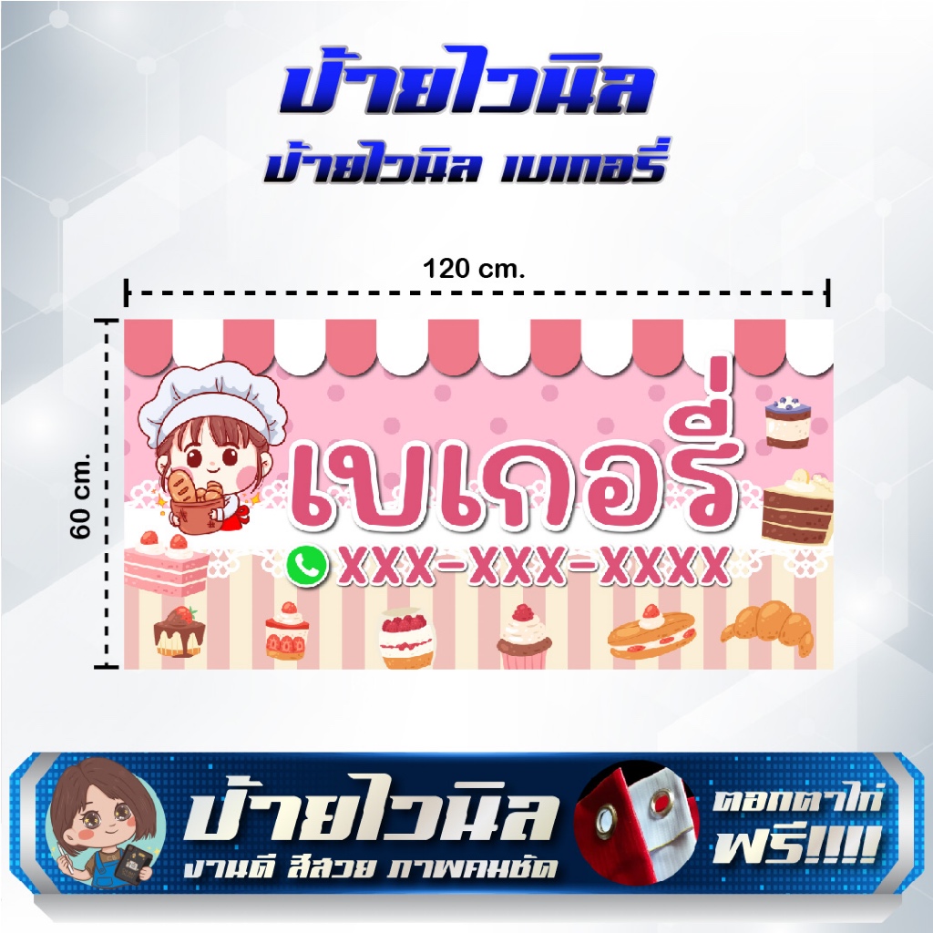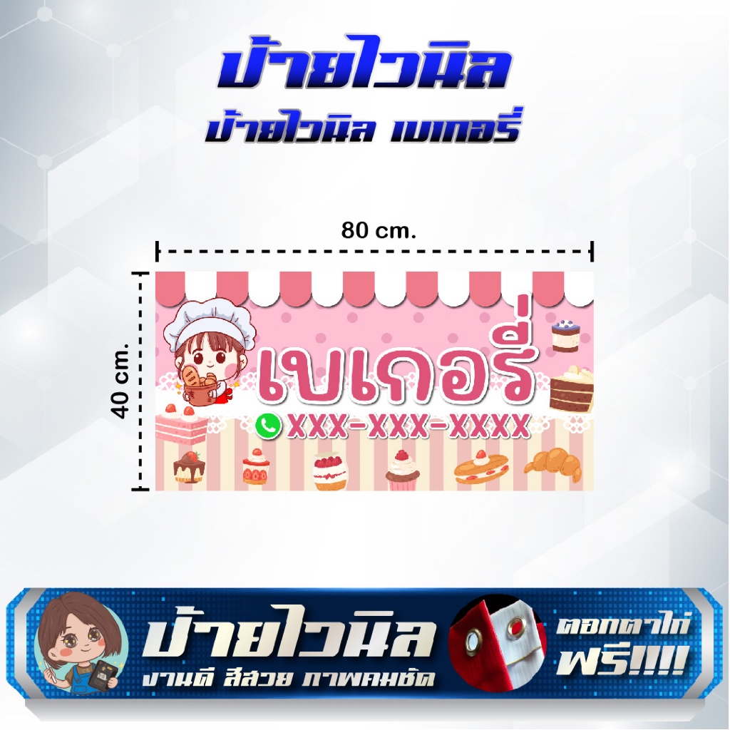 ป้ายไวนิลร้านเบเกอรี่ ขนมปัง แก้ไขข้อความได้