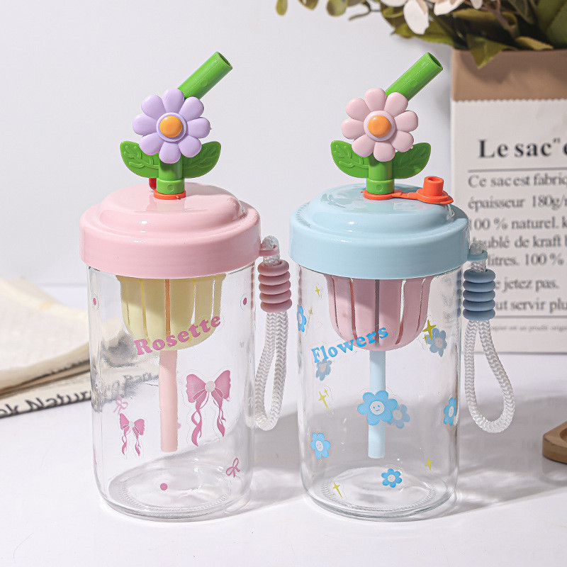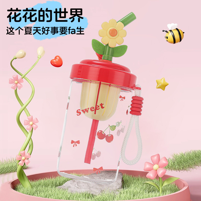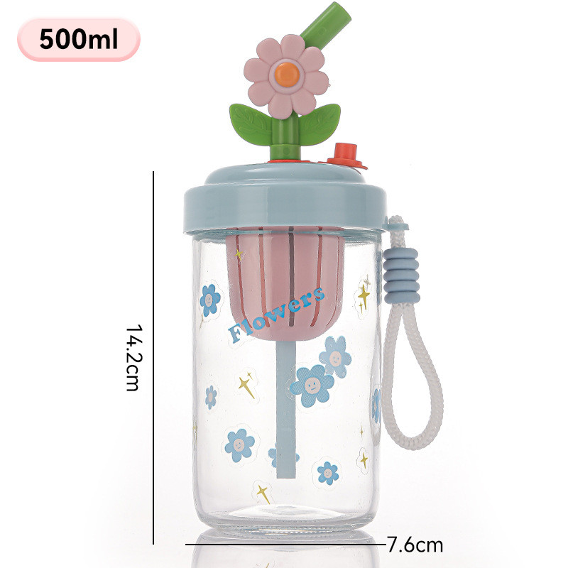 RAINBOW CUP แก้วน้ำใส ถ้วยชาชงเย็น แก้ว อุปกรณ์ชงชาแบบพกพา พร้อมช่องใส่ชา ถ้วยหลอด 500ml