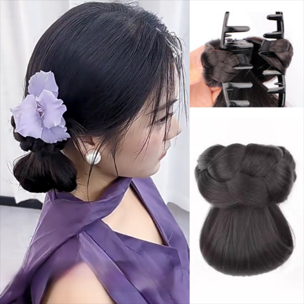 วิกผมหัวซาลาเปาดอกไม้สีงาช้าง, ต่อผมคลิปกรงเล็บ, มวยต่ํา, เครื่องประดับผมยางรัดผมสังเคราะห์ชิ้นผมปลอมปุยด้านหลังศีรษะ