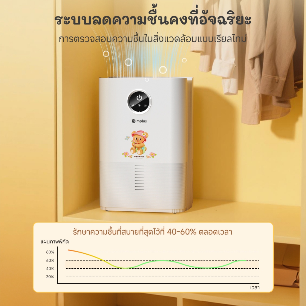 Simplus x Butterbear เครื่องลดความชื้น ถังเก็บน้ำขนาด 1 ลิตร ความชื้นคงที่อัจฉริยะ การใช้งานหน้าจอขน CUSH004BB