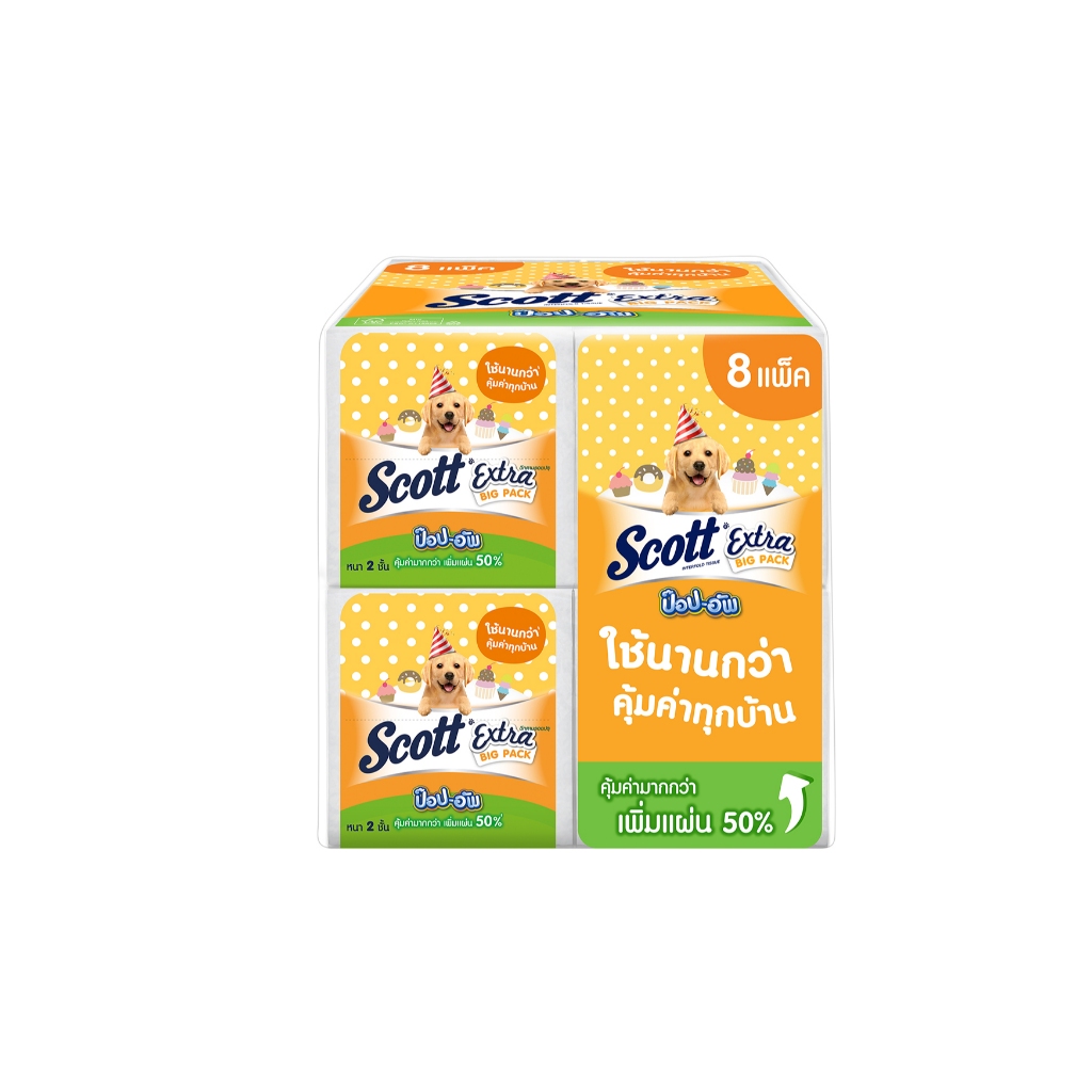 สก๊อตต์ เอ็กซ์ตร้า ทิชชู่ป๊อปอัพ หนา 2 ชั้น ขนาด 130 แผ่น 8 ห่อ