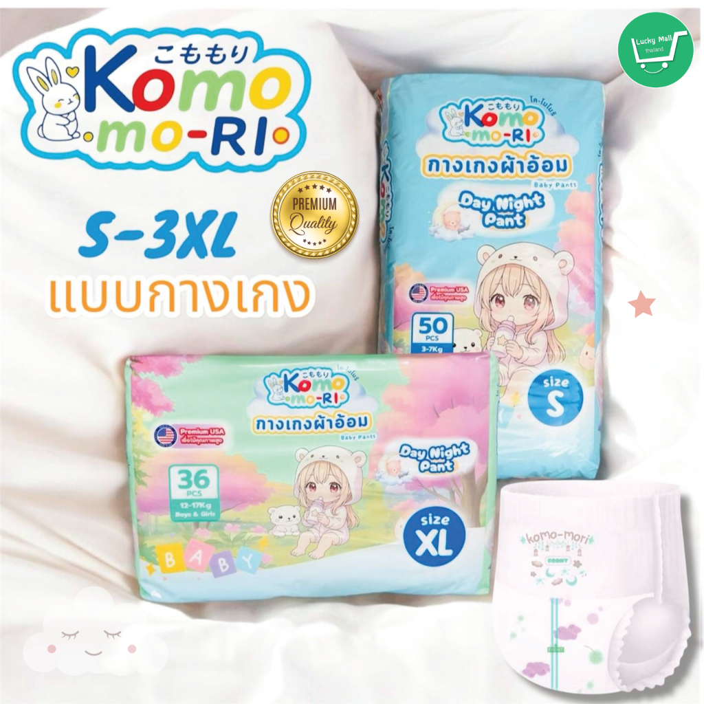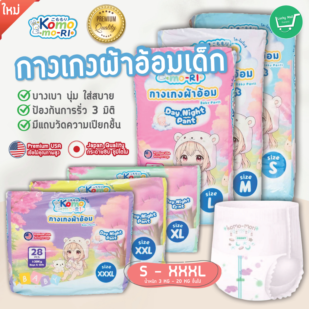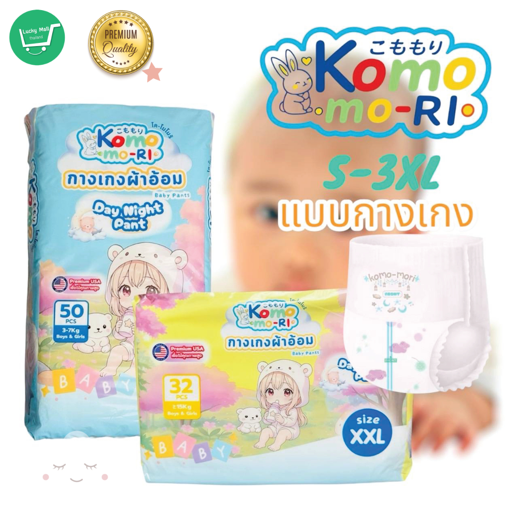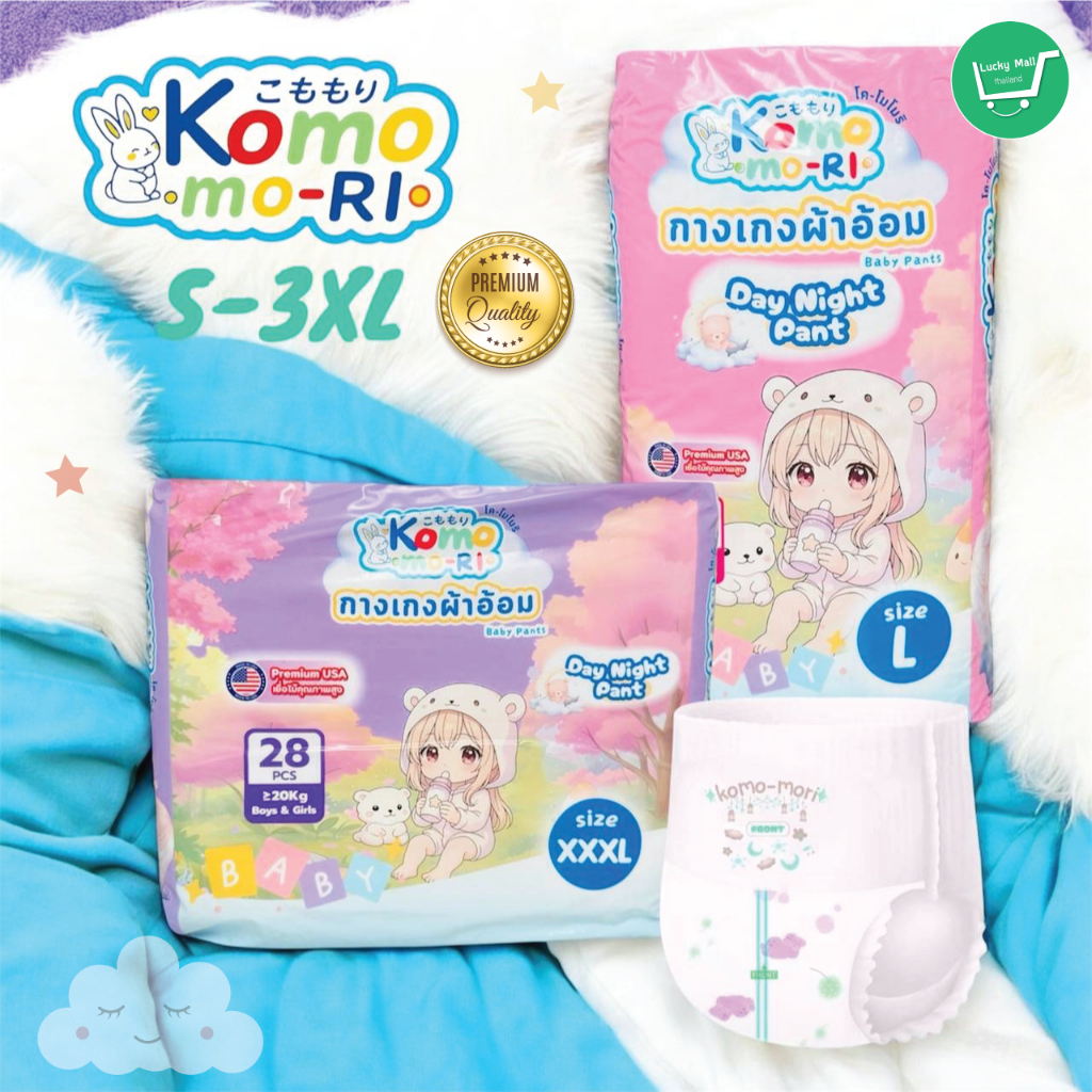 Komo-mori Premium กางเกงผ้าอ้อม มอบการปกป้องลูกน้อยให้สบายตัวด้วยขอบขาและขอบเอวกระชับสรีระ