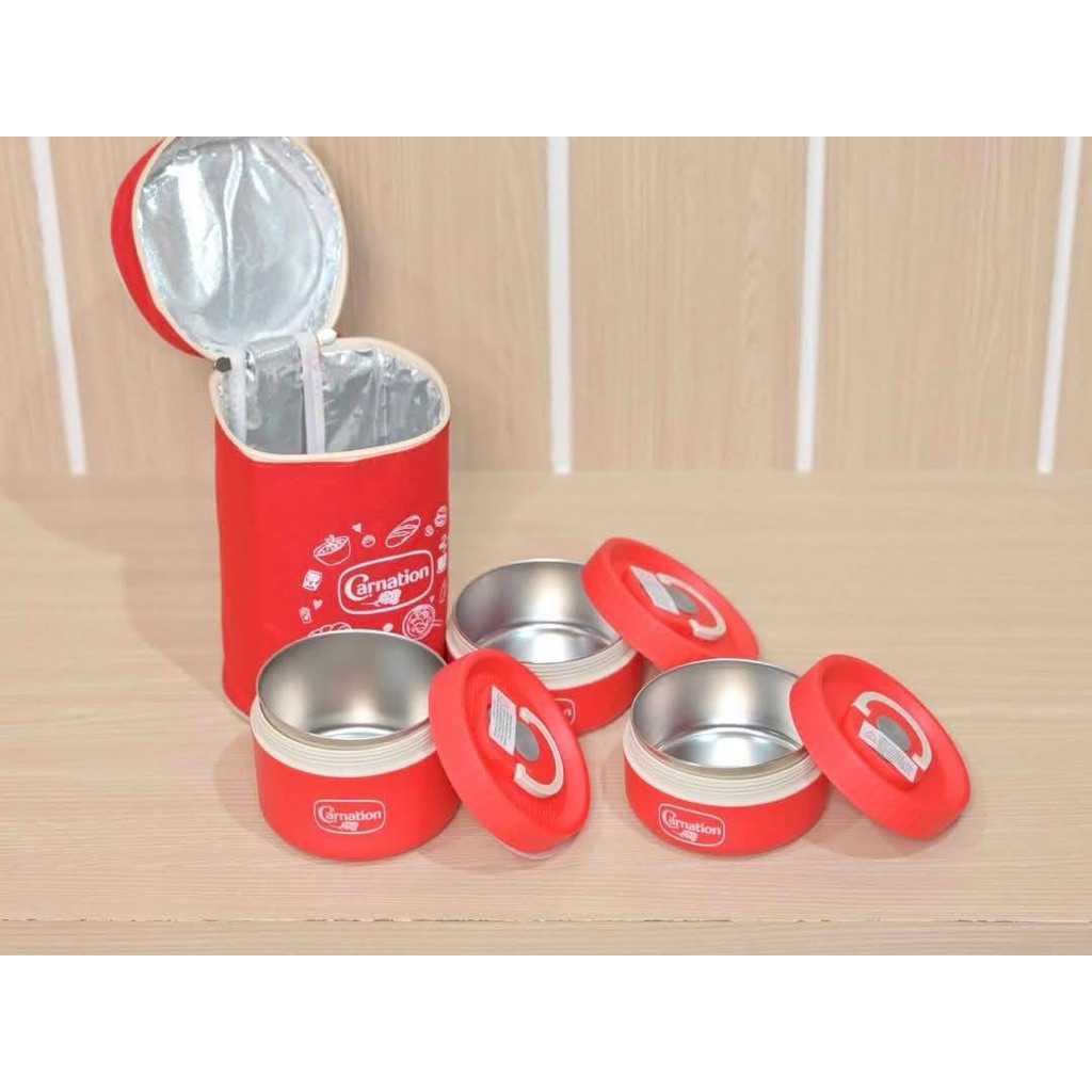 Carnation ❤️🤍 กระเป๋าเก็บอุณหภูมิ + กล่องอาหารสแตนเลสคาร์เนชั่น เซต 4 ชิ้น