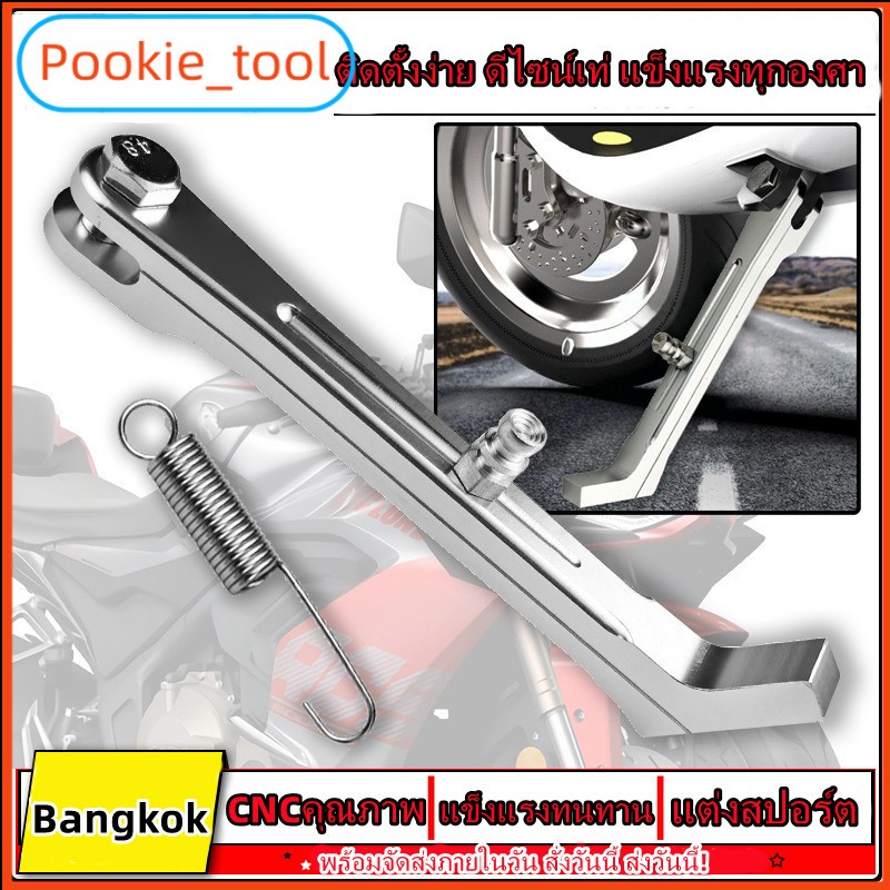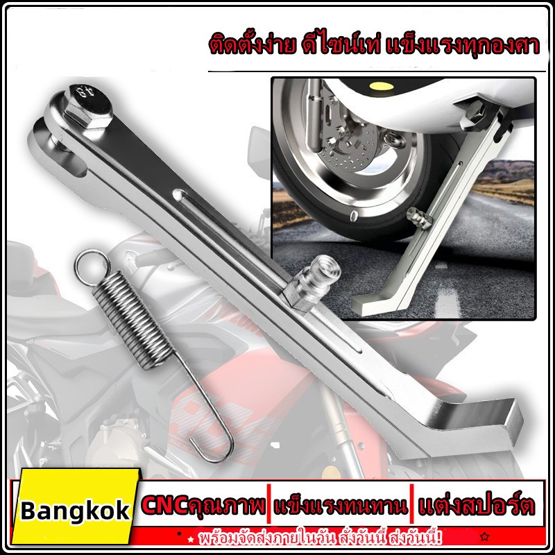 ✨ ขาตั้งข้างมอเตอร์ไซค์ อะลูมิเนียมอัลลอย สีเงิน แข็งแรง ทนทาน ปลอดภัยยิ่งขึ้น! ✨