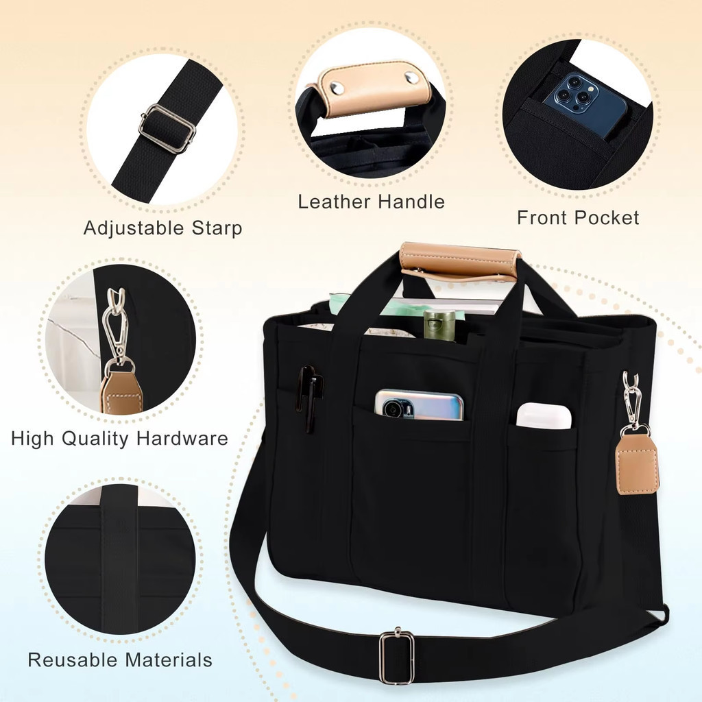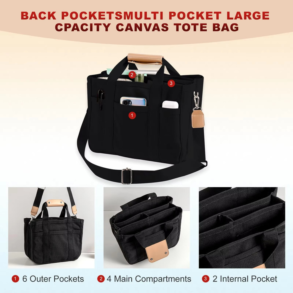 กระเป๋าผ้าแคนวาสพร้อมกระเป๋าหลายช่อง: จัดระเบียบและพกพาสิ่งของจำเป็นทั้งหมดของคุณได้อย่างง่ายดายด้วยความจุขนาดใหญ่ของกระเป๋าสะพายและหลาย