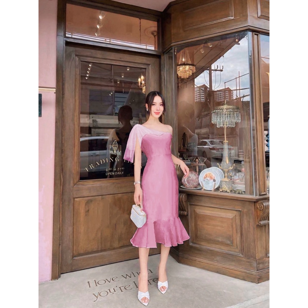 New !!!! 🩷💜 เดรสราตรีออกงาน ทรงอกเฉียงไหล่ผูกโบว์ข้าง S/M/L โบว์ผ้ามุ้งทรงเก๋ อกมีฟองน้ำ กระโปรงแต่งชายระบายสุดชิค ทรงสวยใส่ออกงาน งานแต่ง งานปาร์ตี้ก็ปังเลิศสุดๆ ลุคไฮคราส คุณหนุสุดๆ ผ้าเนื้ออย่างดี แม่ค้าแนะนำเลยค่ะ