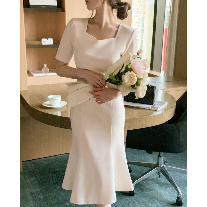 พบกับความสง่างามที่เรียบง่าย ด้วยเดรสออกงานทรงเข้ารูป ดีไซน์คอเหลี่ยม