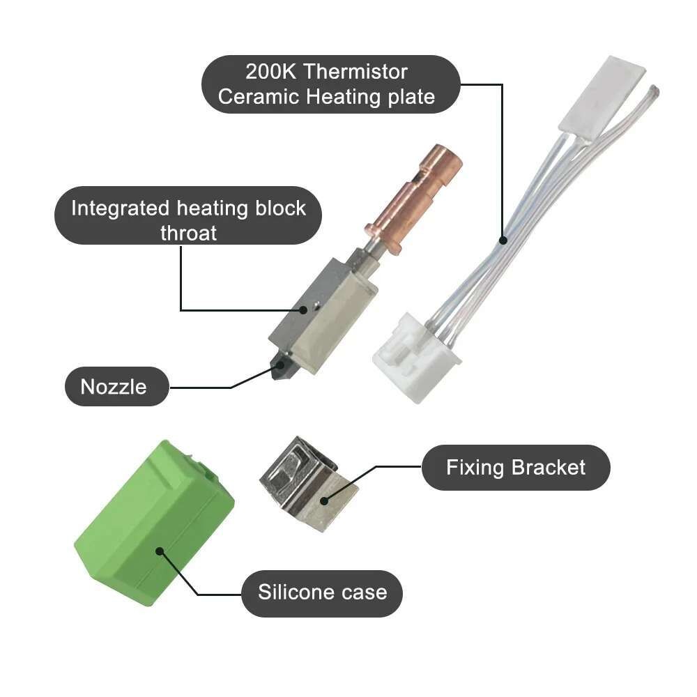 แหวนความร้อนเซรามิกที่ได้รับการอัพเกรด【 Upgraded ceramic Hotend 】แหวนความร้อนเซรามิกที่ติดตั้งที่ปลายร้อนไม่เพียง แต่ช่วยเพิ่มความเร็วในการทำความร้อนเท่านั้น แต่ยังให้ความร้อนสม่ำเสมอมากขึ้นอีกด้วย นอกจากนี้ยังมีฉนวนกันความร้อ