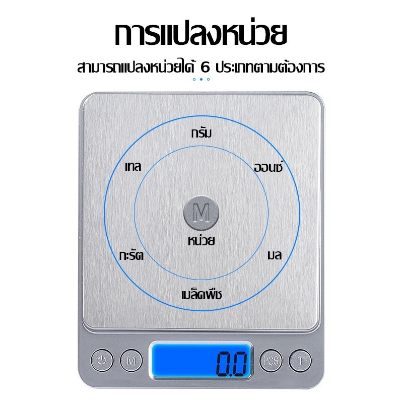 หลายหน่วย : g/oz/ozt/dwt/gn/ct ใช้งานง่าย : ปุ่มที่ใช้งานง่ายของเครื่องชั่งและจอ LCD เรืองแสงช่วยให้คุณวัดได้อย่างรวดเร็วและง่ายดาย ดีไซ