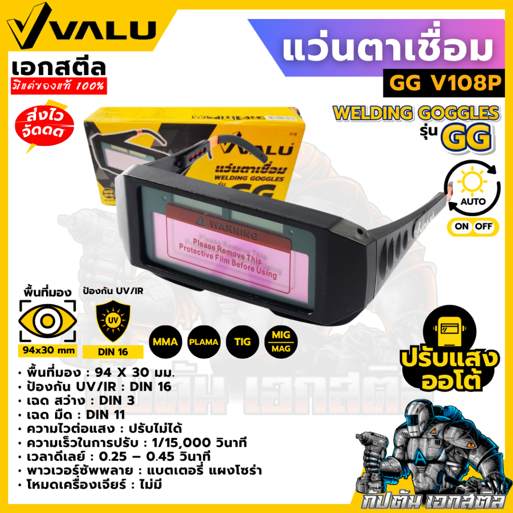 (ถูกสุด) VALU แว่นตาเชื่อม GG V108P ปรับแสงอัตโนมัติ แว่นเชื่อม (แวลู) ของแท้ 100% ============================== ซื้อ 1 ตัว ก็ได้ราคาส่งเลย เอกสตีลขายถูกที่สุดในตลาด ️ ลูกค้าต้องการใบกำกับภาษีกดเลือกขอใบกำกับภาษีและแจ้งทางแชทได้เลยค่ะ ===================