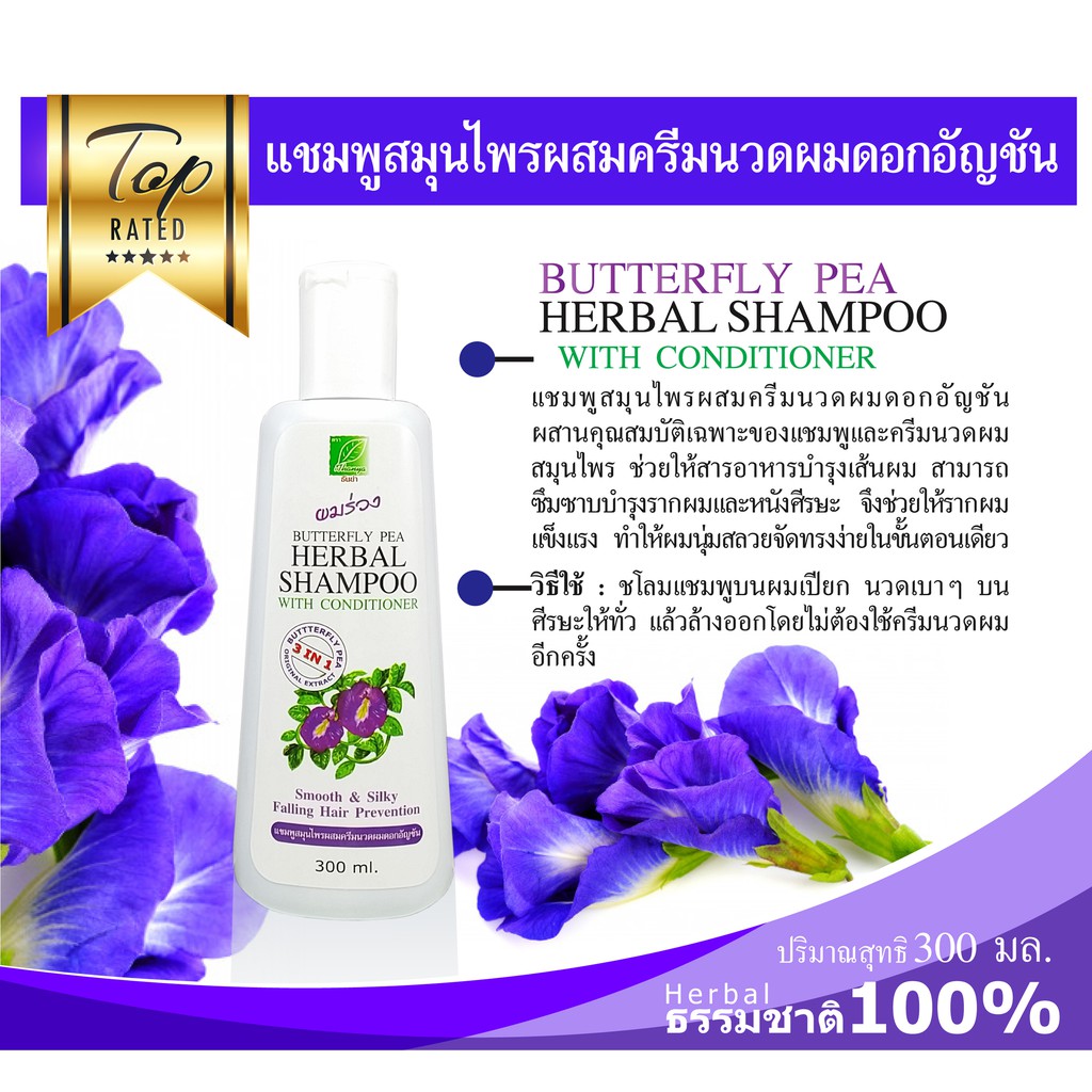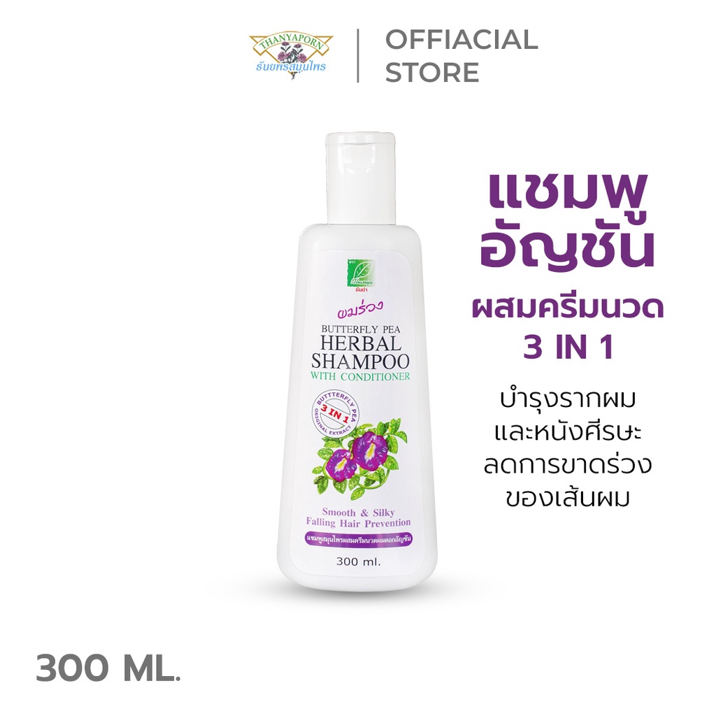 แชมพูผสมครีมนวดผมดอกอัญชัน 3in1 แชมพูสมุนไพร แชมพูลดผมร่วง แชมพูอัญชัน แชมพูผมมัน (ปริมาณสุทธิ 300 มล.)