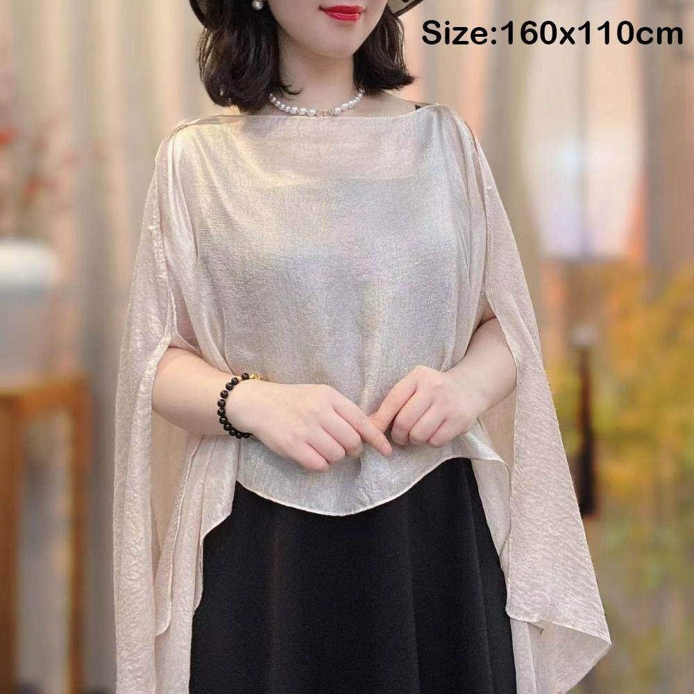 หยิงราดี ผ้าคลุมไหล่สำหรับผู้หญิง สีบริสุทธิ์ ชีฟองเย็น พรหมเคป เสื้อคลุมแบบแจ็คเก็ตเคป