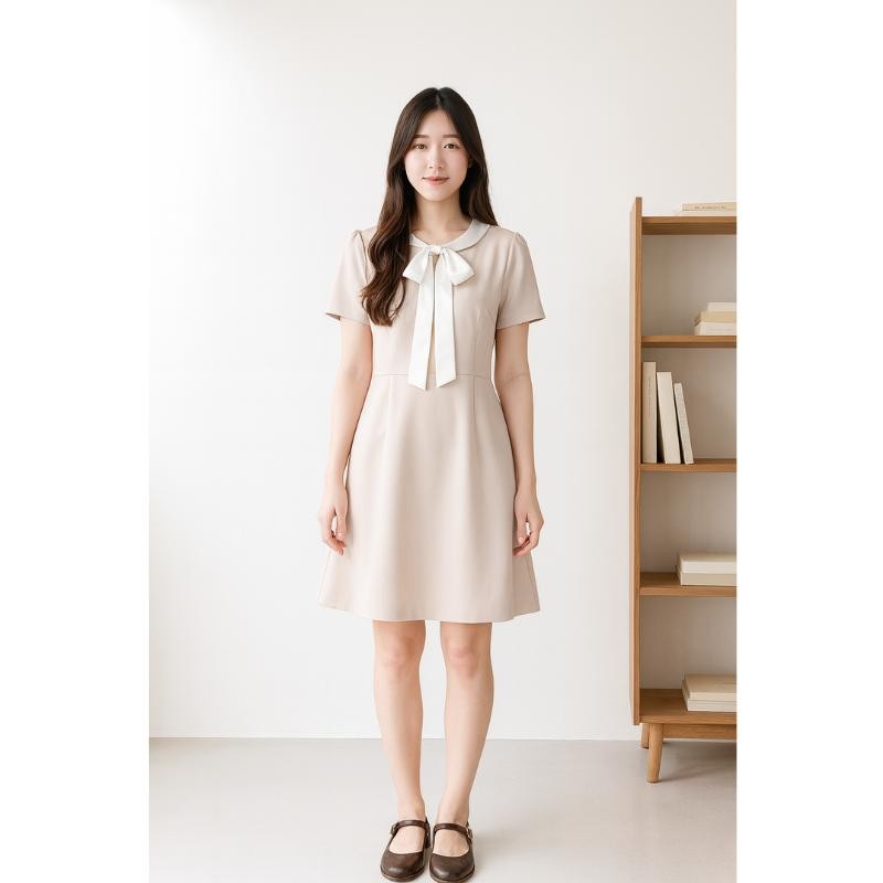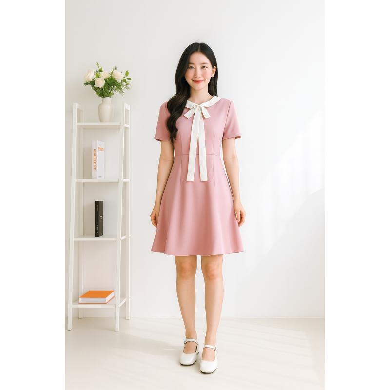 ชุดเดรสสั้นสุดหวาน ที่มาพร้อมดีไซน์เรียบหรูและสุภาพ 😇 ตัวชุดเป็น ทรง A-line ที่ช่วยพรางสัดส่วนได้ดี