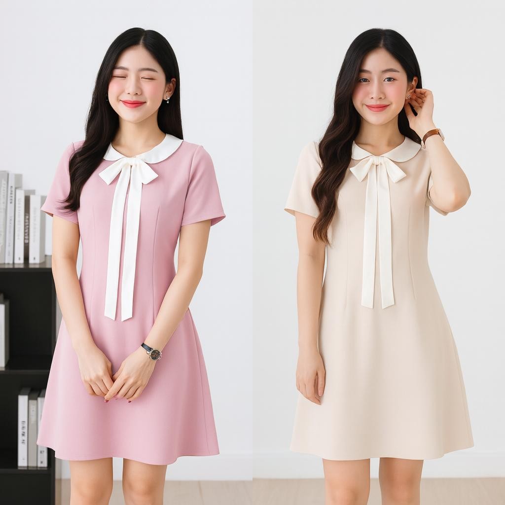 ทำให้ใส่สบายและคล่องตัว 💃 ดีไซน์คอเสื้อเป็นปกใหญ่สีขาวแบบ Peter Pan ที่ช่วยให้ลุคดูน่ารักและโดดเด่น 🤍