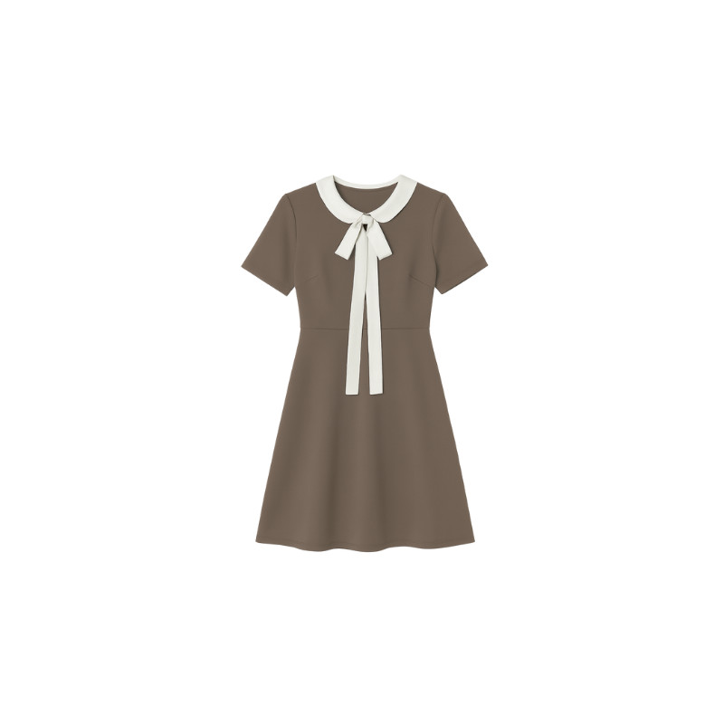 [S-5XL] เดรสวินเทจ คอปกขาวตัดโบว์ยาว เอวเข้ารูปกระโปรงเอไลน์ เรียบหรู พลัสไซซ์ เดรสออกงาน