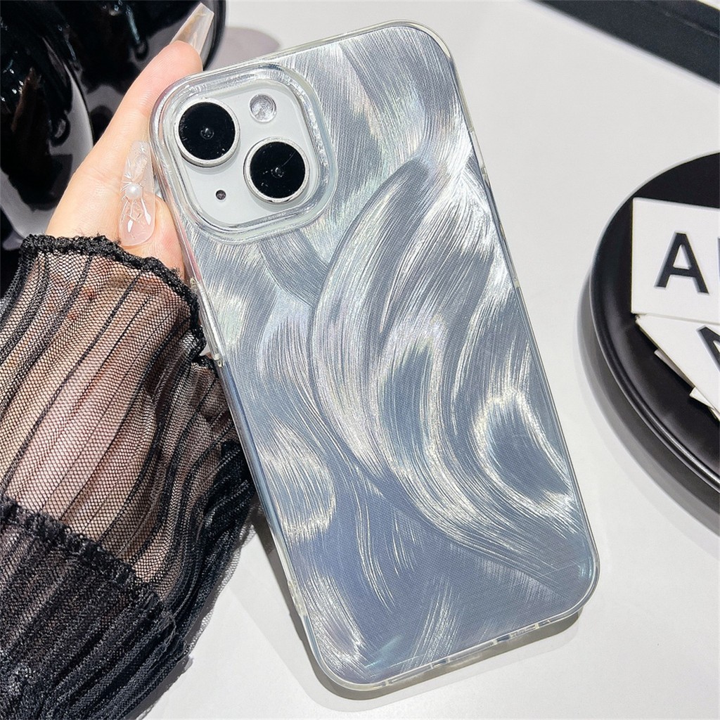 เคส ขนนกสีเงิน โทรศัพท์มือถือ For iPhone 17 17Pro 17Air 17Promax 16E 16/15/14/13/12/11 Promax 7Plus/8Plus 055