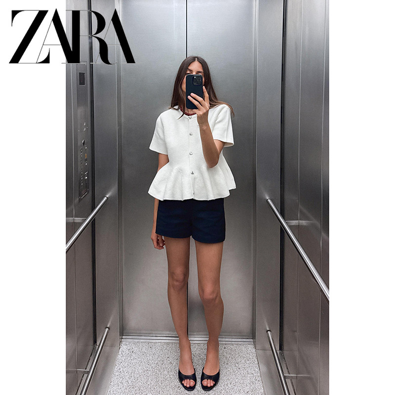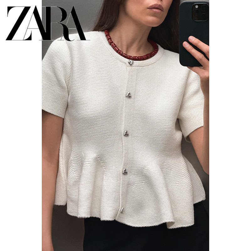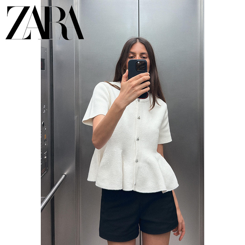 ZARA ซาร่า 25 ฤดูร้อนสินค้าใหม่เสื้อผ้าสตรีกระโปรงสั้น-สไตล์รอบคอแขนสั้นแจ็คเก็ตถัก