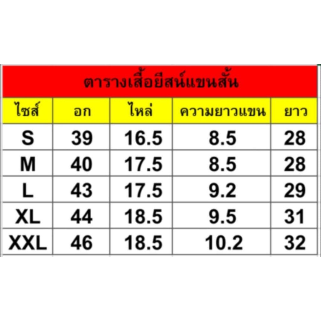| Model | แขนสั้น, L, แขนสั้น, XL, แขนยาว, S, แขนยาว, XXL, แขนสั้น, S, แขนสั้น, M, แขนสั้น, XXL, แขนยาว, M, แขนยาว, L, แขนยาว, XL |
