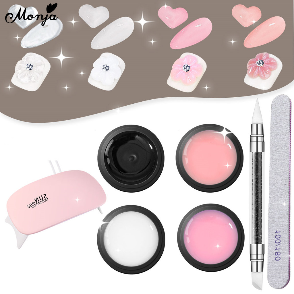 Monja 4ชิ้น/เซ็ตเล็บขยายโคมไฟเครื่องเป่าชุดแกะสลักสร้างเจลไม่ติดมือง่ายขยายหยิกกาว carving tool set