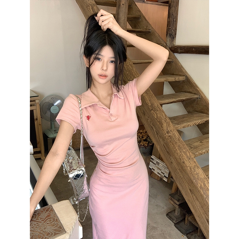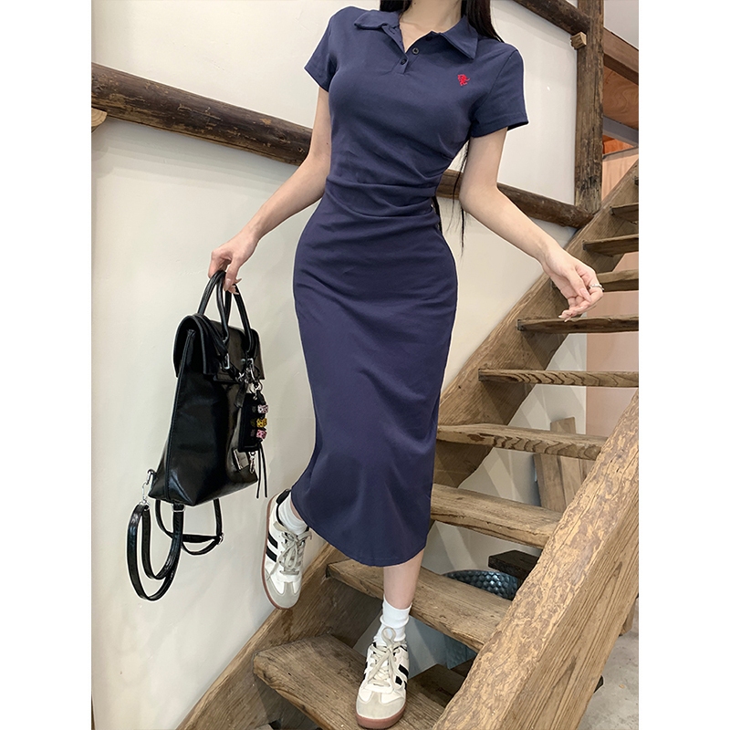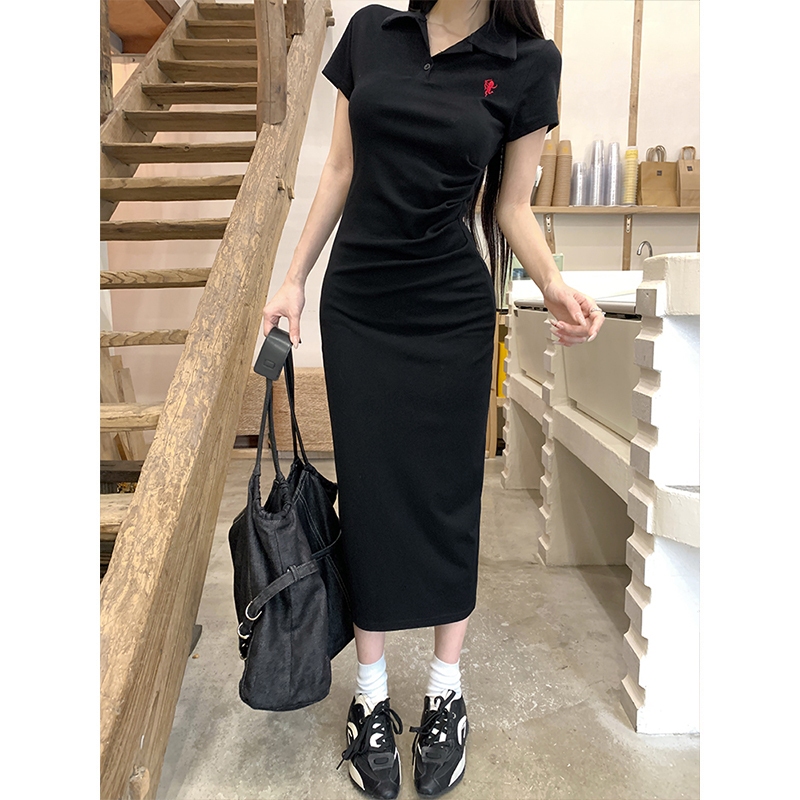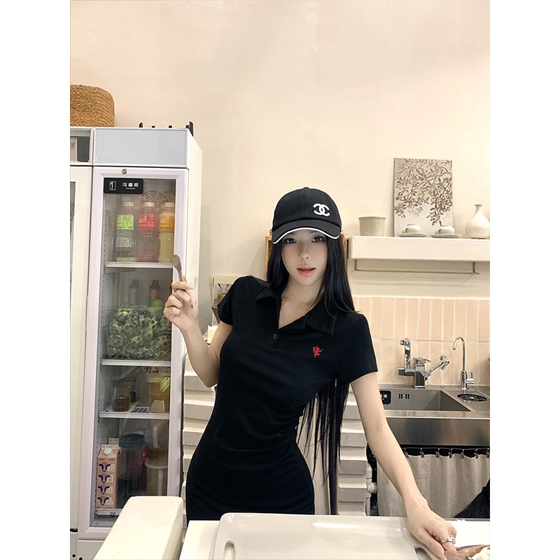 Dailywear พร้อมส่ง✨เดรสปักลาย คอปกโปโล สำหรับผู้หญิง สไตล์ฤดูร้อน แขนสั้น เดรสจับจีบ เดรสจับจีบ สไตล์เอว #2010