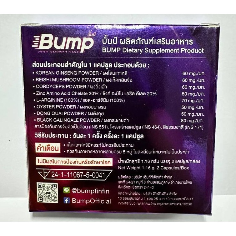 บั้มป์ Bump อาหารเสริม 1 กล่อง 2 แคปซูล กล่องม่วง