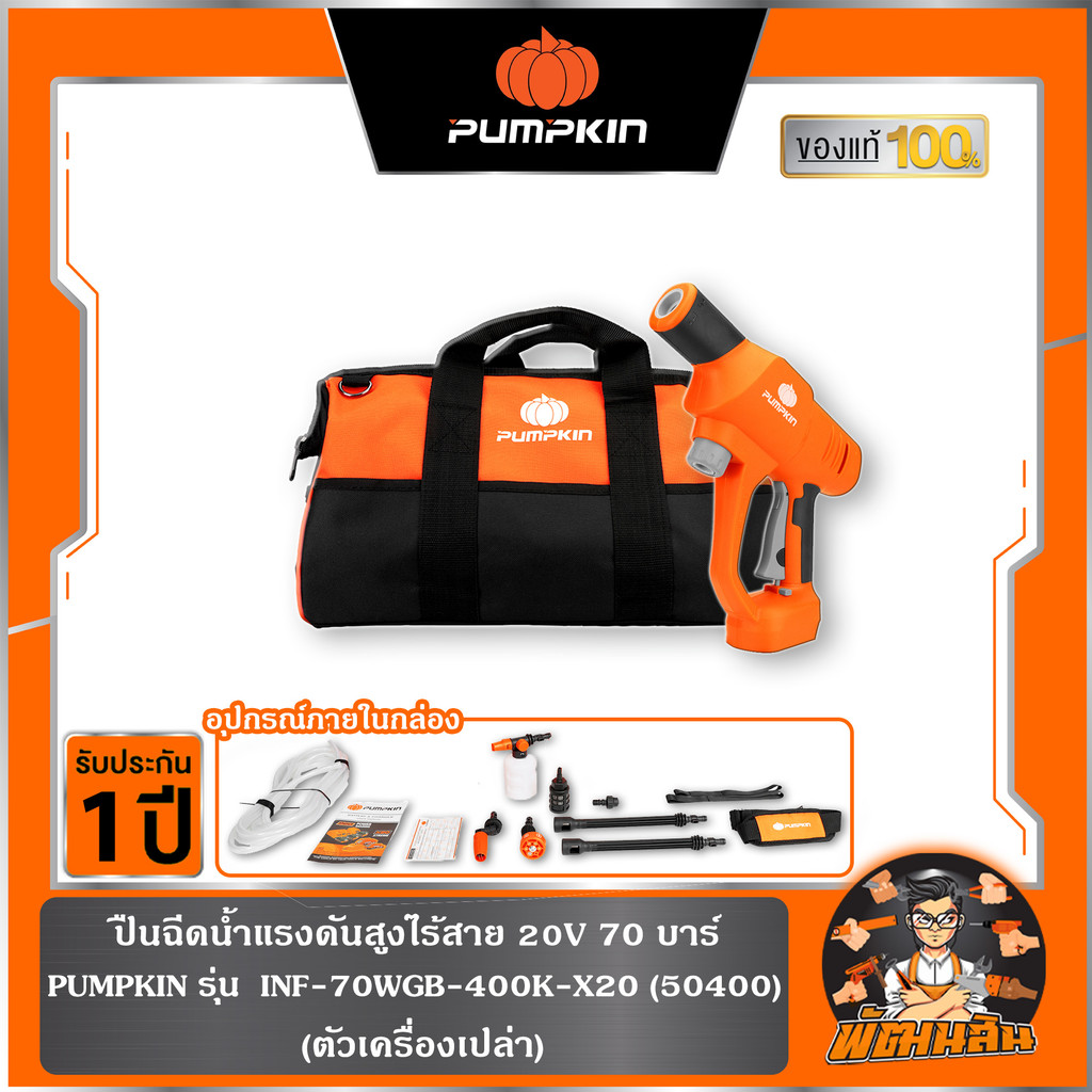 🧡รุ่นใหม่🧡ปืนฉีดน้ำแรงดันสูงไร้สาย 20V 70 บาร์ INF-70WGB-401K-X20 PUMPKIN (50400) ตัวเปล่า,(50401) ครบชุด