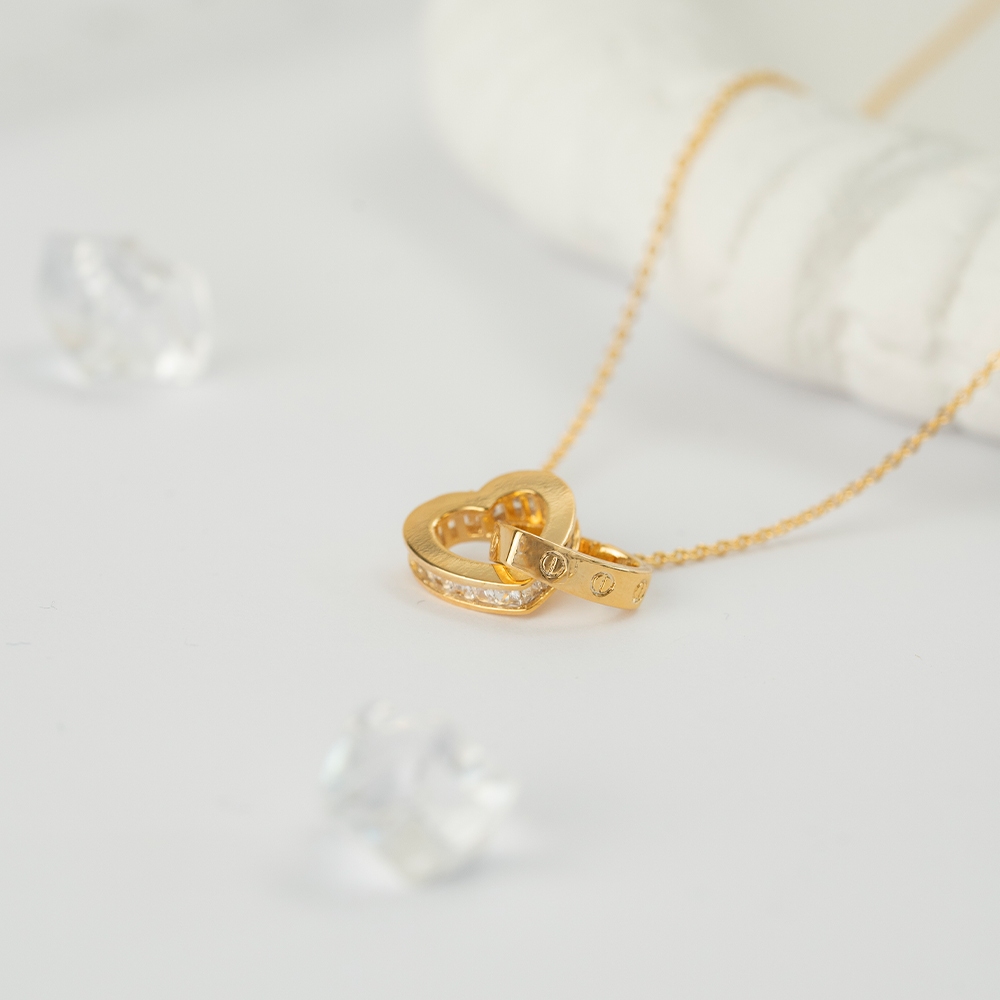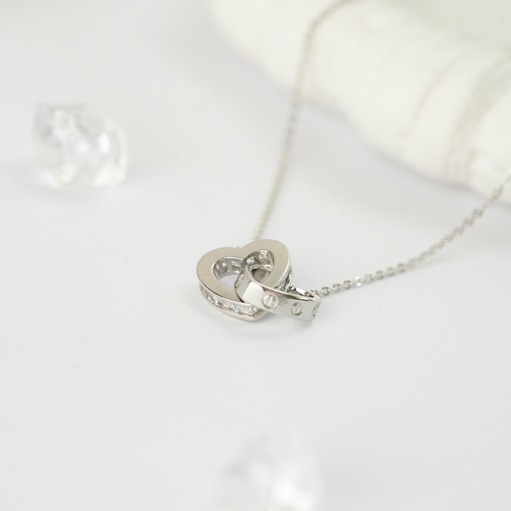 Cazzy สร้อยคอหัวใจคล้อง แฟชั่นประดับเพชรCZ ยอดฮิต เรียบหรู สำหรับผู้หญิง