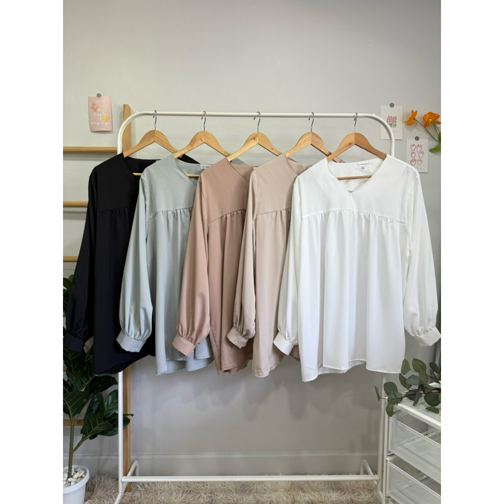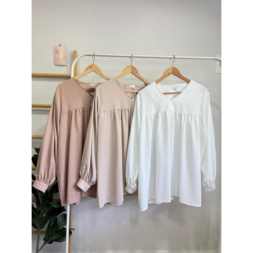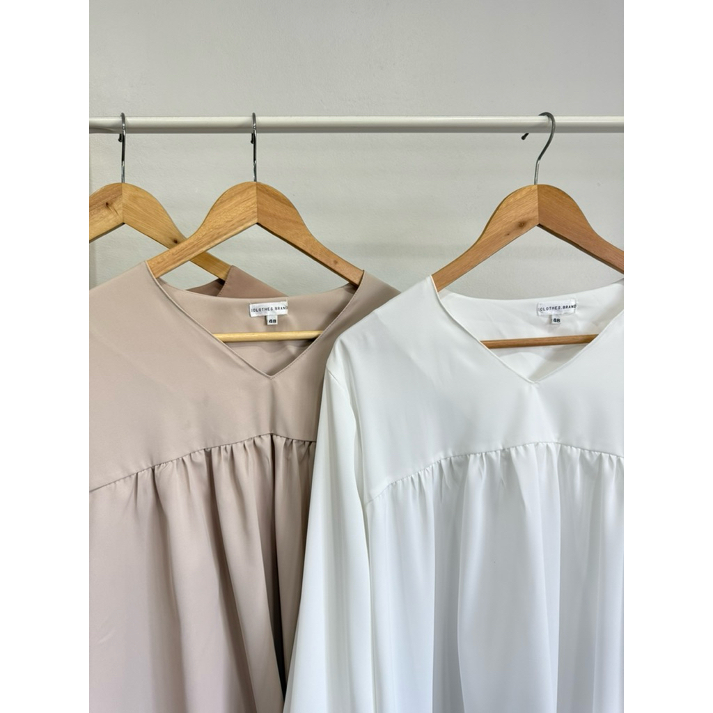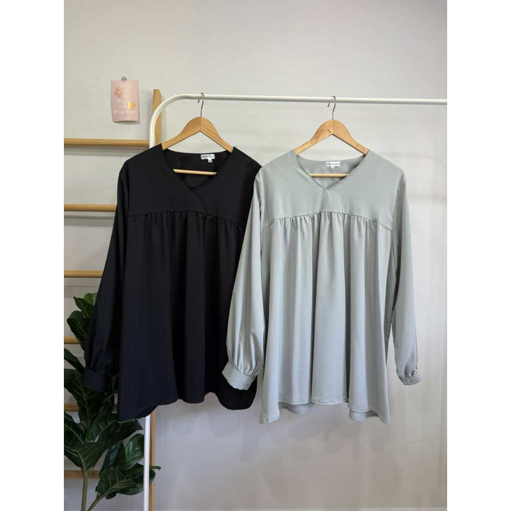 เสื้อพลัสไซส์ สำหรับสาวใหญ่🫶🏻 คอวี ต่อรูดอกหน้า เพิ่มความพริ้ว ชายเสื้อเท่ากัน แขนพองนิดๆ ขอบกระดุม 1 เม็ด หยิบสะดวก ใส่สบาย 🍃