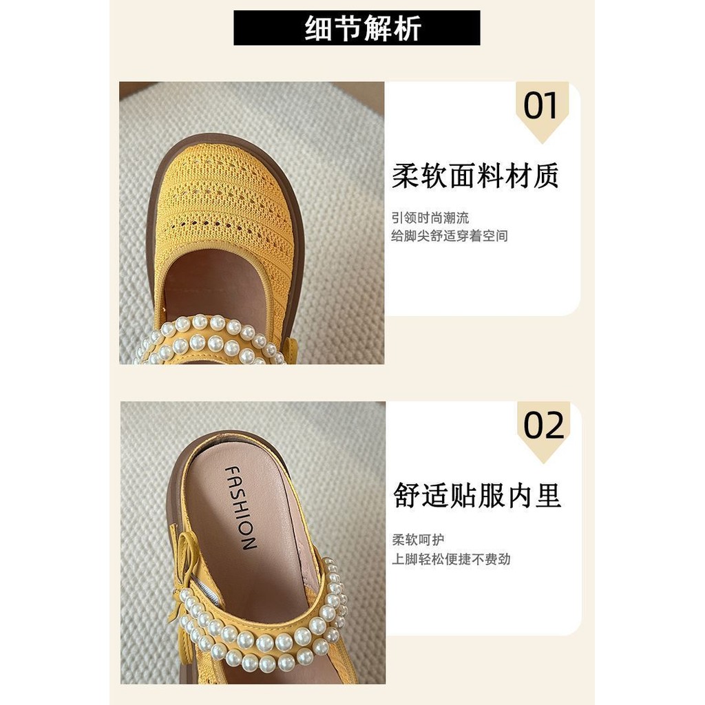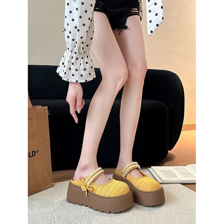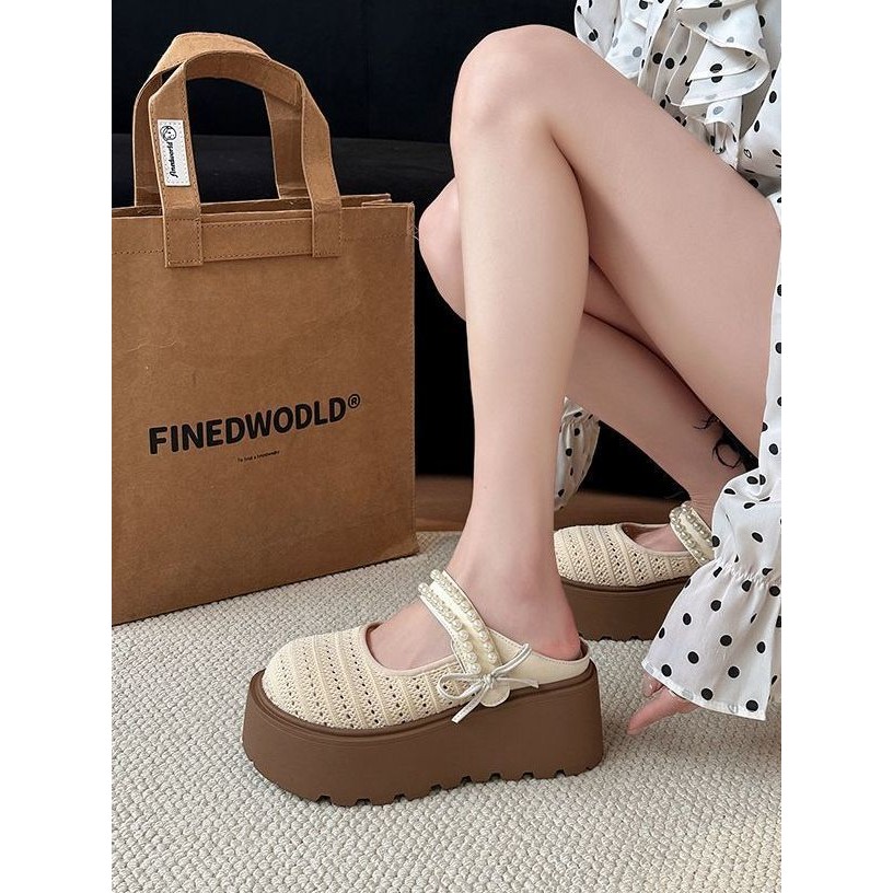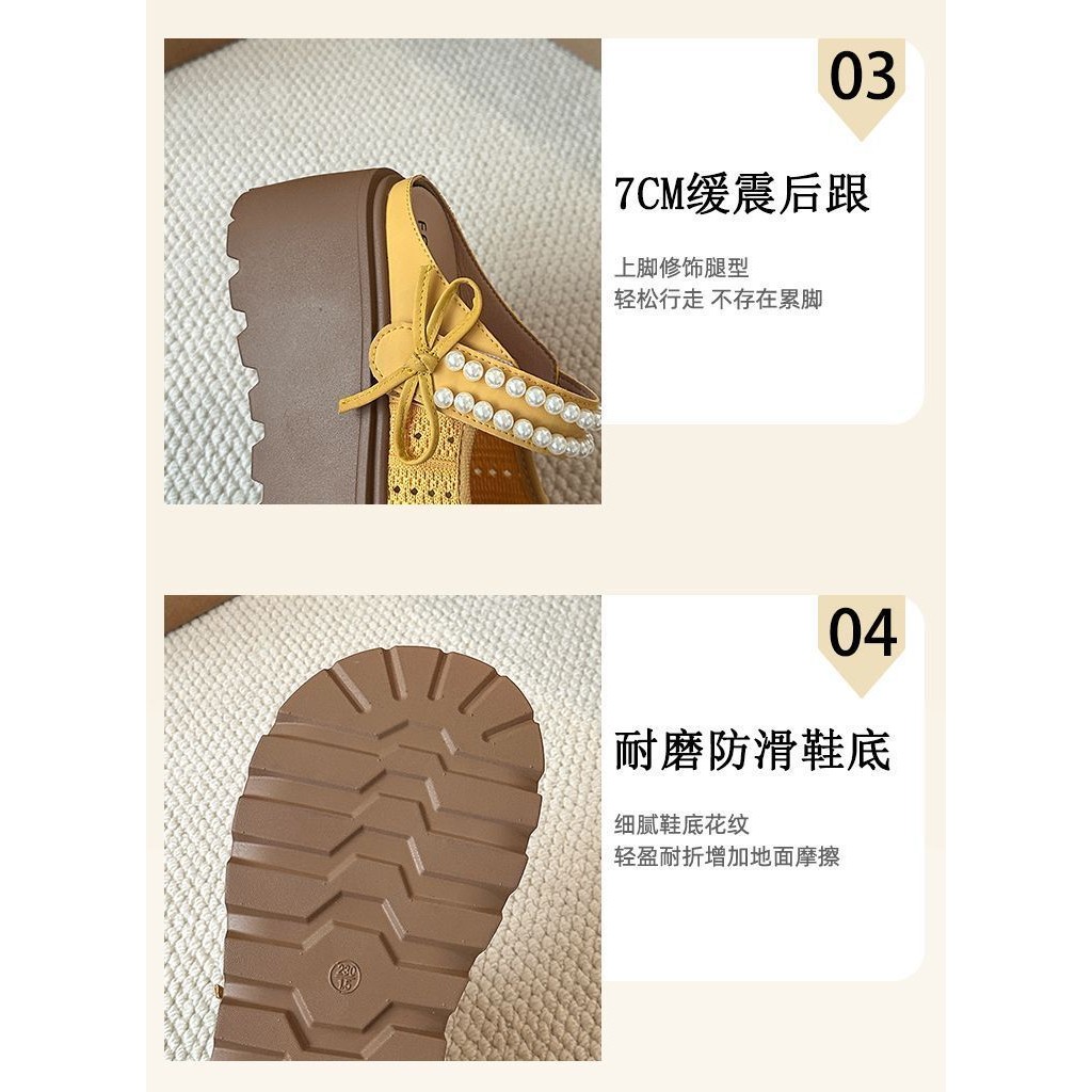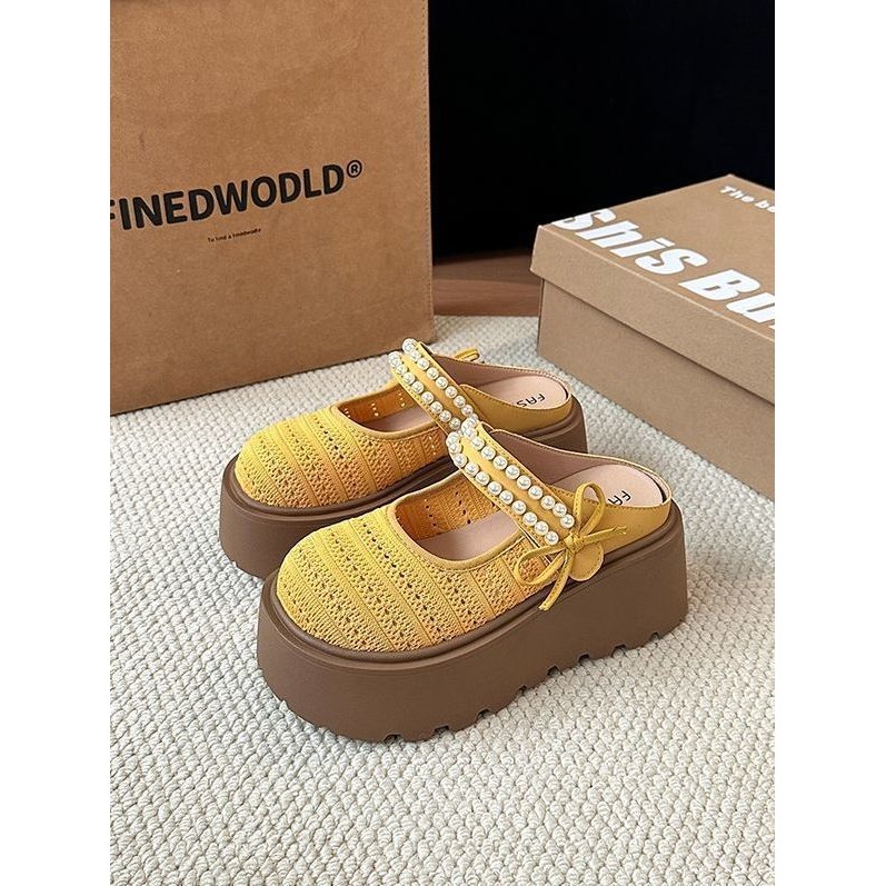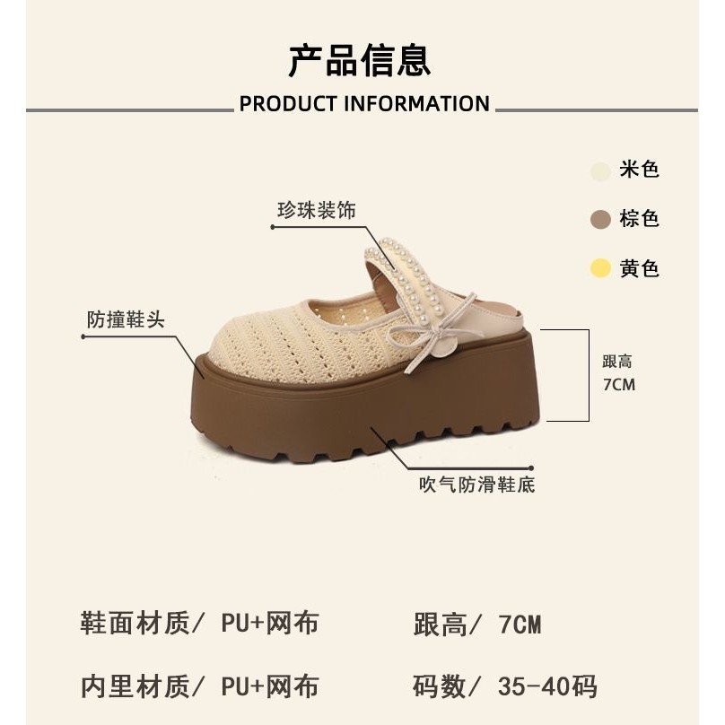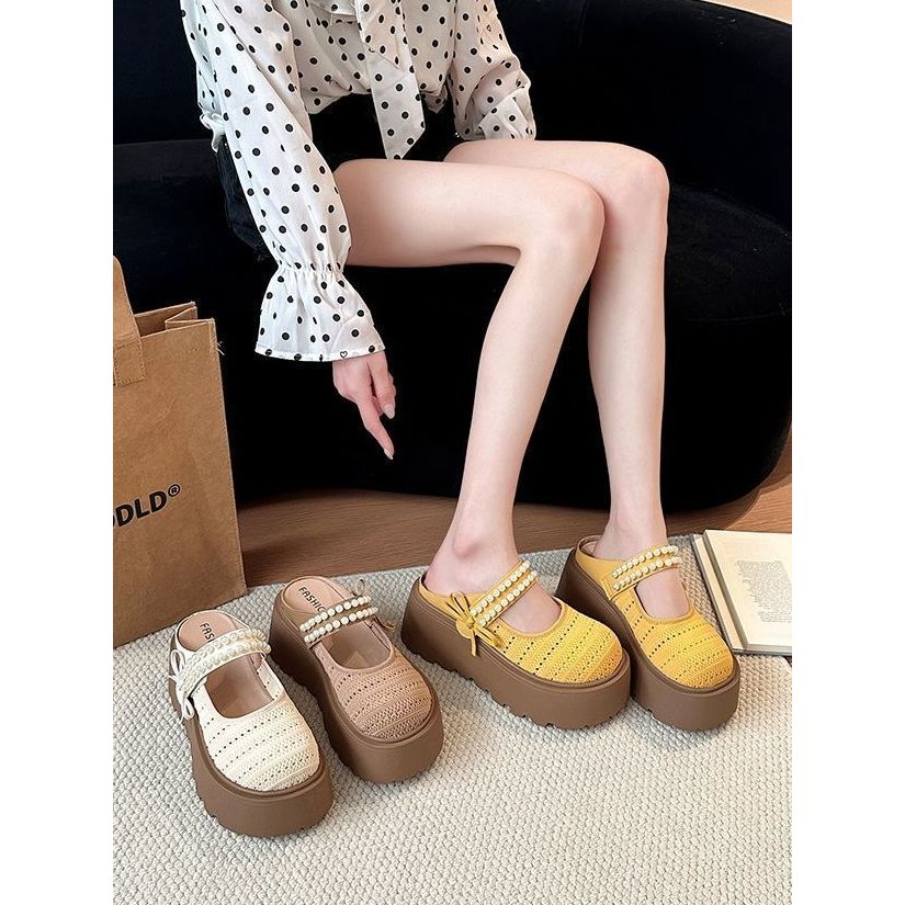 สวมใส่ด้านนอกหนา-Soled Shit-Stepping รองเท้าแตะครึ่งขนาดเล็กรองเท้าแตะ 2025 Breathable รองเท้าผู้หญิงยุโรปสไตล์ใหม่ Baotou เพิ่มความสูงรองเท้าผู้หญิง