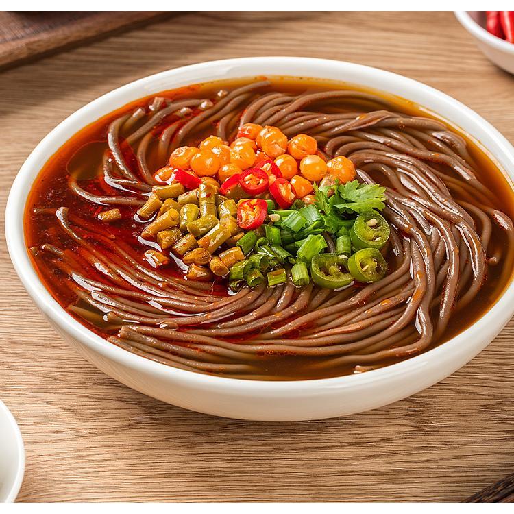 หลายคนอาจจะไม่เคยได้ยิน หรือคุ้นเคยกับเส้นชนิดนี้มากนัก เส้นรากเฟิร์นเป็นเส้นแบบท้องถิ่น ได้มาจากการนำรากเฟิร์นมาทุบแล้วทำให้เป็นแป้ง ตัวเส้นจะมีสีน้ำตาลเข้มไปจนถึงดำ เส้นจะมีความหนึบๆ กำลังดี ไม่เหนียวเท่าเส้นมันเทศ และดูดซับรสชาติได้ค่อนข้างดี