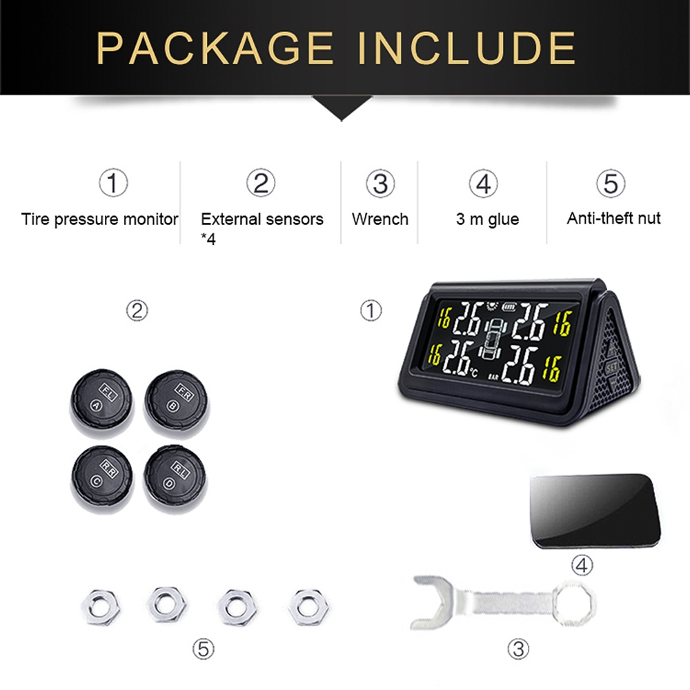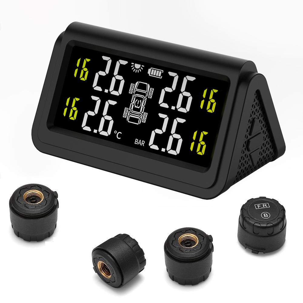 Joysync C280 ระบบตรวจสอบแรงดันลมยางไร้สายพลังงานแสงอาทิตย์ (TPMS) พร้อมเซ็นเซอร์ 4 ตัว – จอแสดงผลเรียลไทม์, สัญญาณเตือนแรงดันสูง/ต่ําและอุณหภูมิ