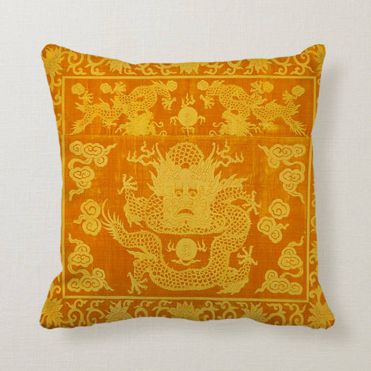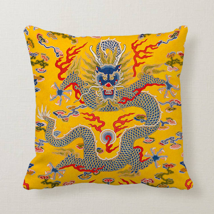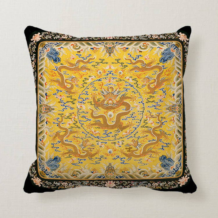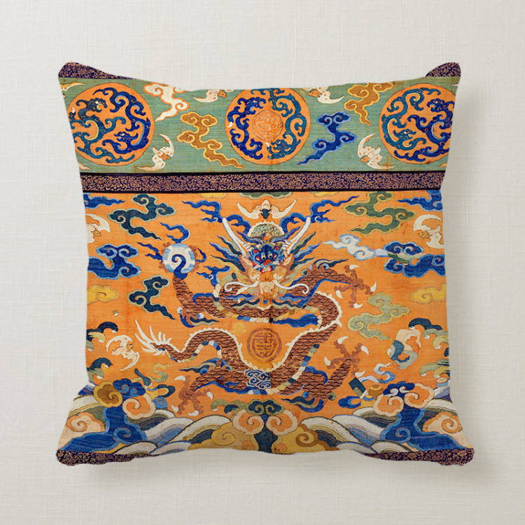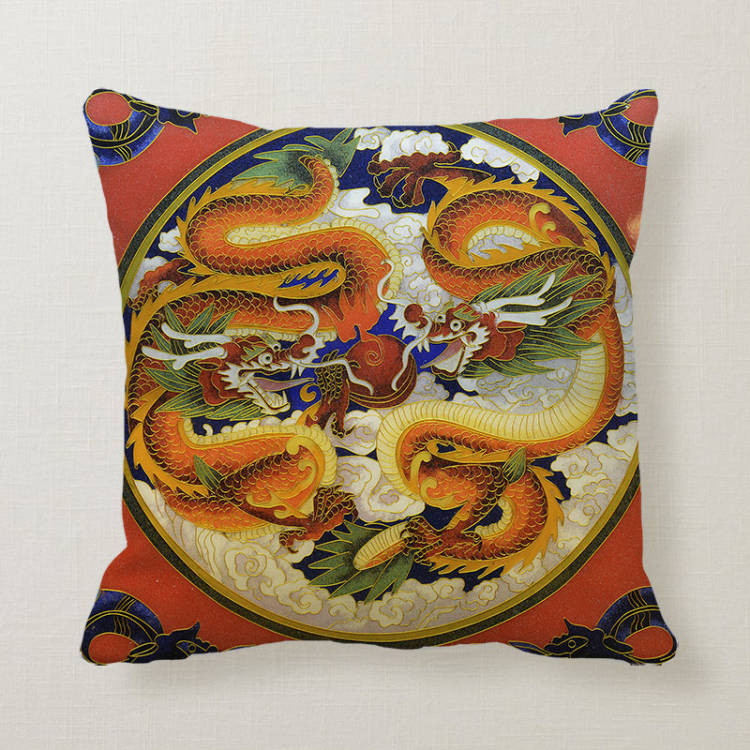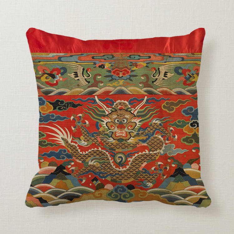 45X45 ซม.VINTAGE จีน Loong รูปแบบมังกรสั้นตุ๊กตาวัสดุปลอกหมอนเบาะนุ่มพิมพ์ด้านเดียว