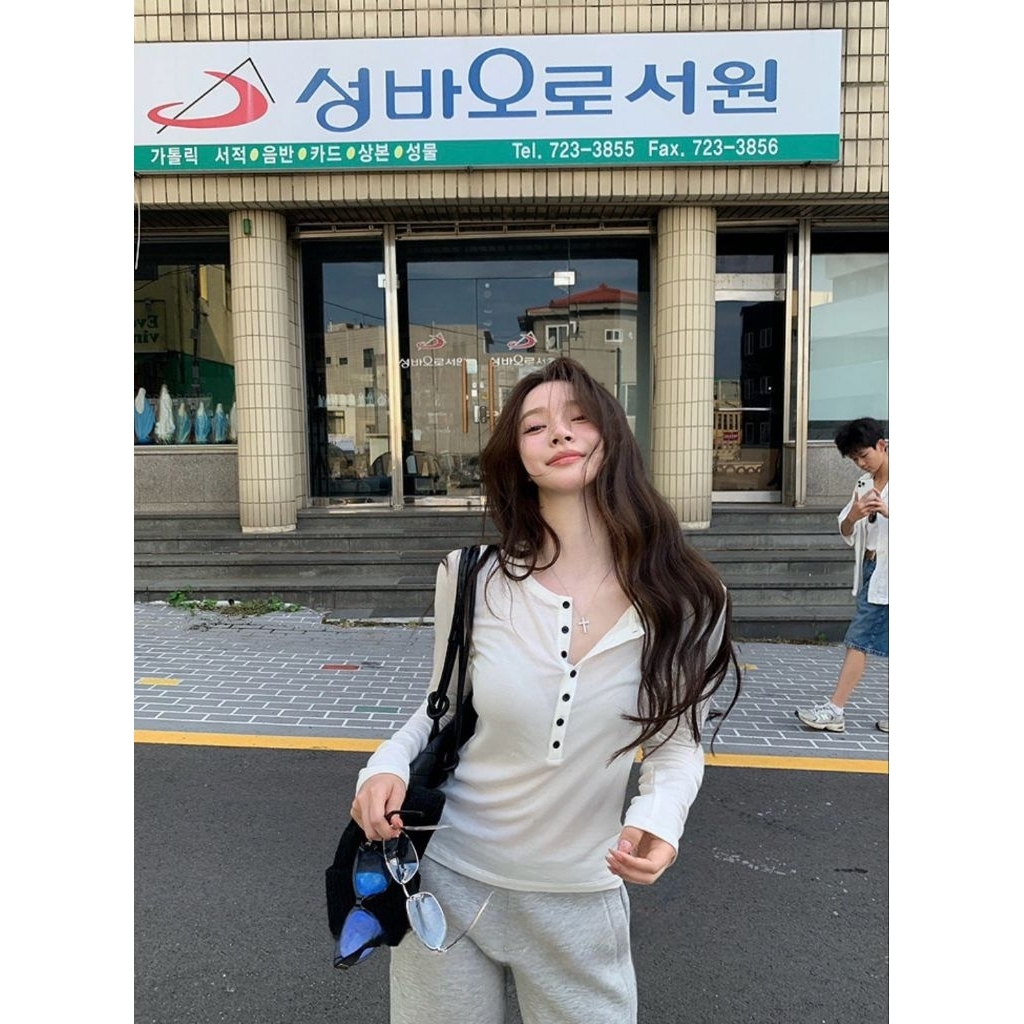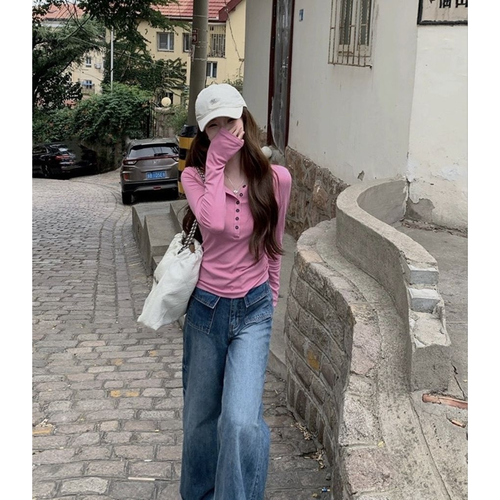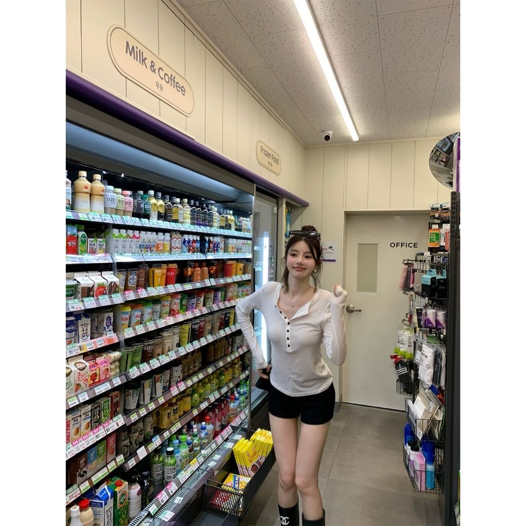 🇰🇷เสื้อแขนยาวคอกลม แต่งกระดุมสีดำ ทรงสวย ผ้าดี ยืดหยุ่นได้ ใส่สบายค่า ใส่เที่ยวใส่ทำงานได้เลยค่า งานสวย ใส่ออกมาแล้วดูดีมากๆค่า สีสวย แมทซ์ง่ายค่า