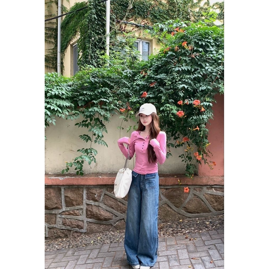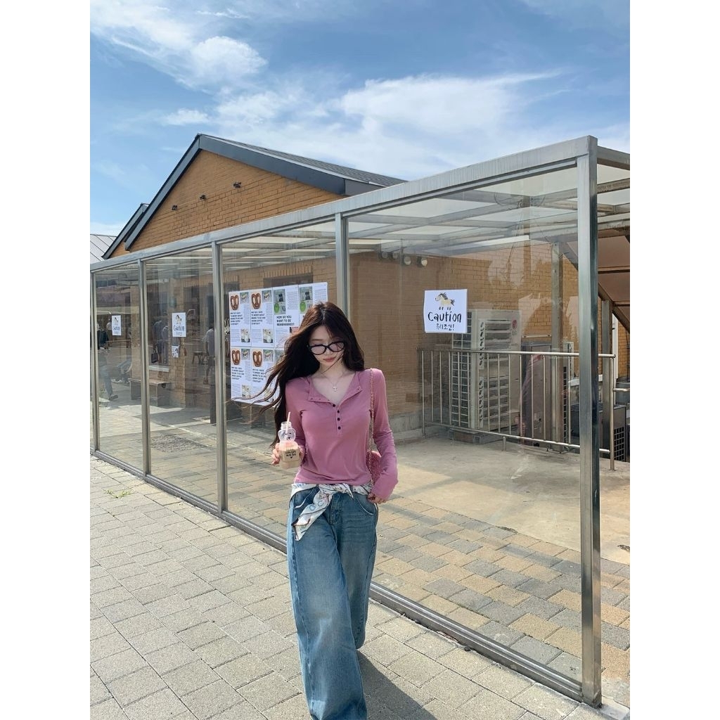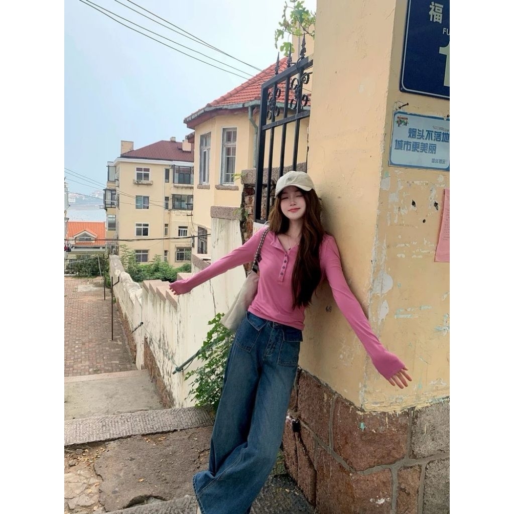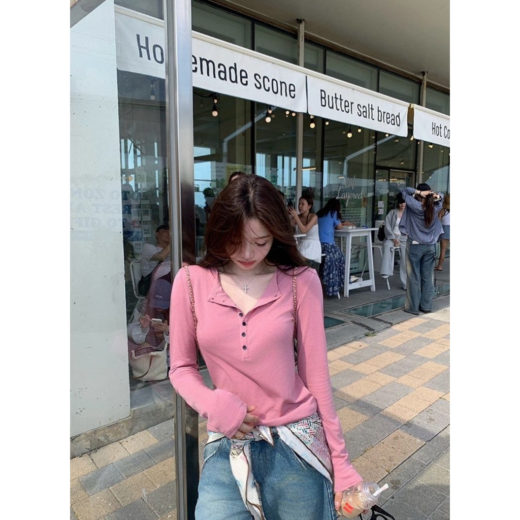 🇰🇷เสื้อแขนยาวคอกลม แต่งกระดุมสีดำ ทรงสวย ผ้าดี ยืดหยุ่นได้ ใส่สบายค่า ใส่เที่ยวใส่ทำงานได้เลยค่า งานสวย ใส่ออกมาแล้วดูดีมากๆค่า สีสวย แมทซ์ง่ายค่า