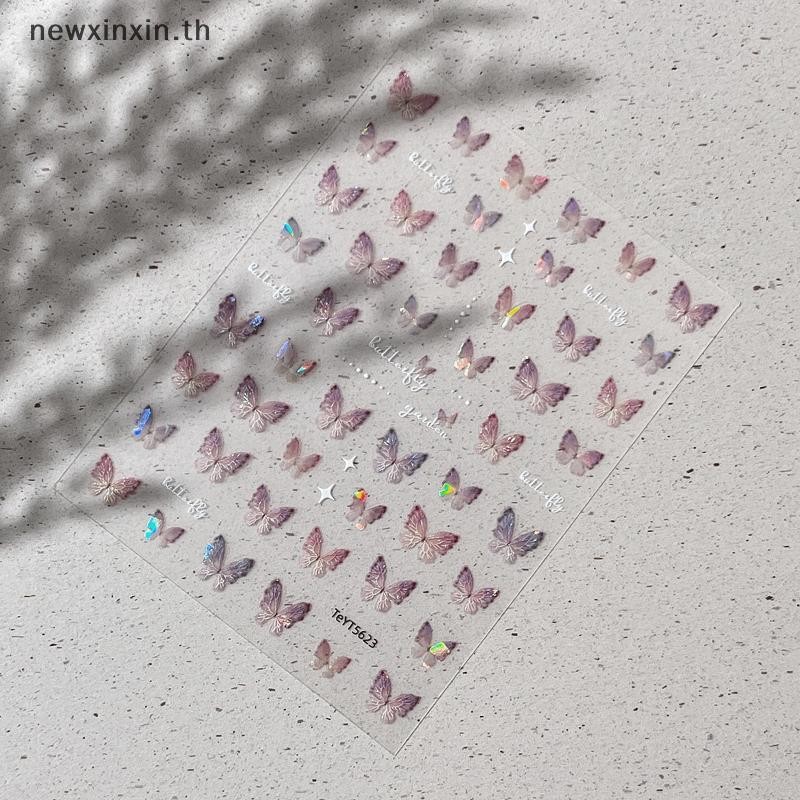^N^ 3ง เปลือกแสงผีเสื้อสติกเกอร์กาวตกแต่งเล็บเลเซอร์สติ๊กเกอร์ติดเล็บติดด้วยตนเองเล็บจัดหาเล็บ {ที}