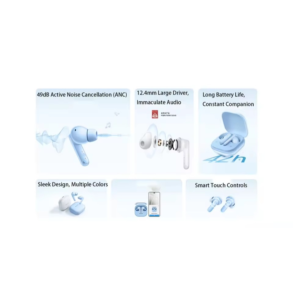 หูฟังตัดเสียงรบกวนไร้สาย – 49dB ANC, เวลาเล่น 42H, การควบคุมแบบสัมผัส, เสียงไฮไฟ