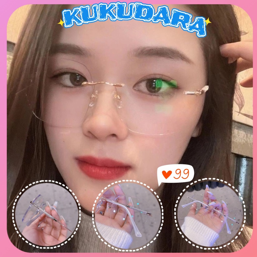💖KUKUDARA💖แว่นสายตาสั้น เปลี่ยนสีเมื่อโดนแสง แว่นกรองแสงสีฟ้าไร้ขอบ แดดบล็อครังสีเลนส์ซุปเปอร์ออ ป้องกันรังสียูวี 99%