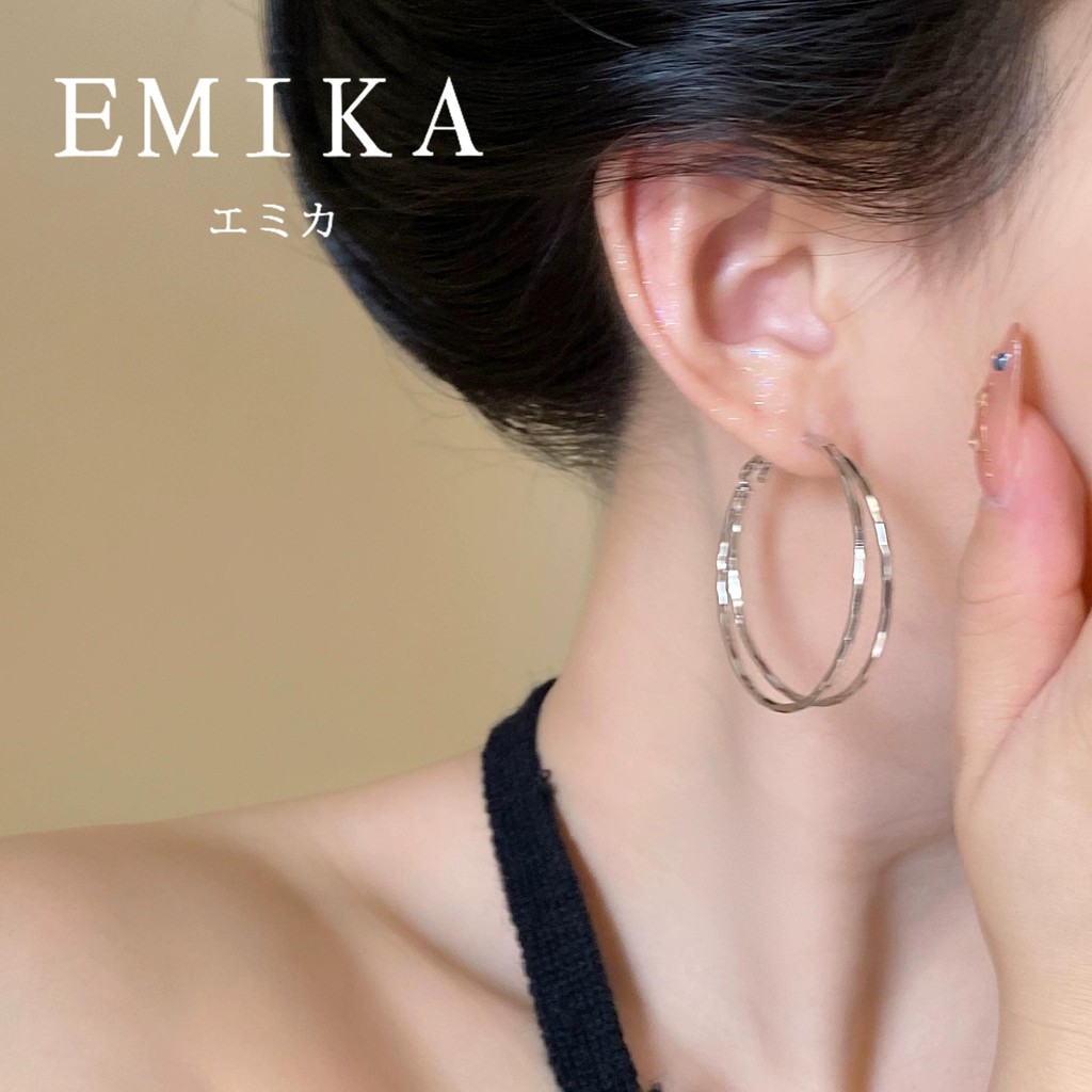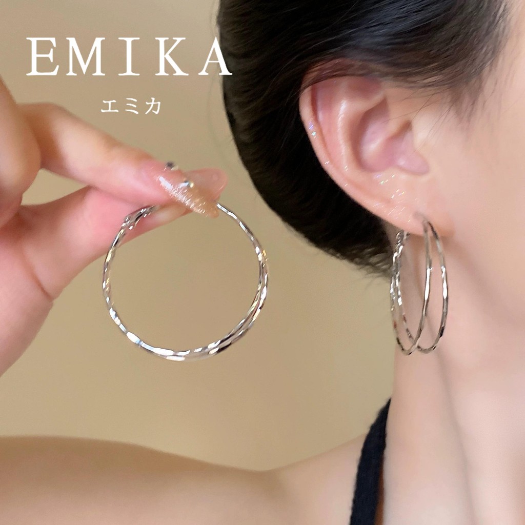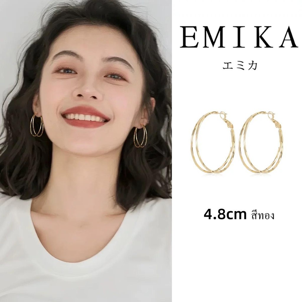 EMIKA ต่างหูห่วงขนาดใหญ่ ต่างหูแฟชั่น 4.8cm สีเงิน สีทอง ต่างหูผู้หญิง สไตล์เกาหลี ต่างหูที่เหมาะกับรูปหน้าทุกแบบ