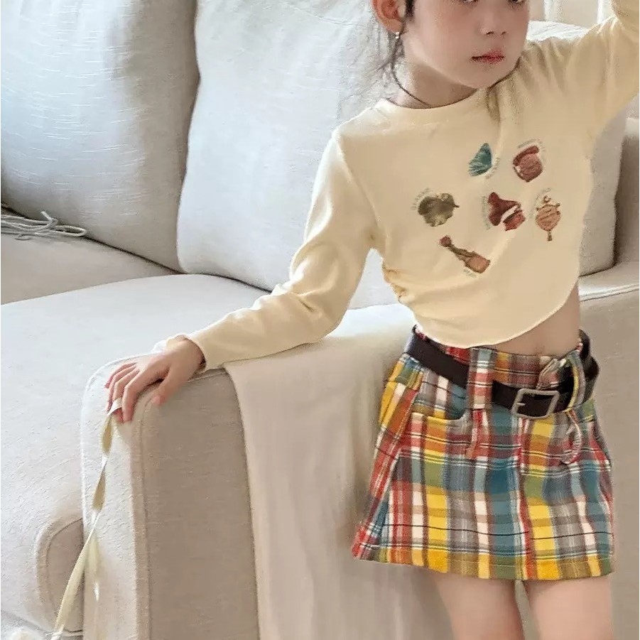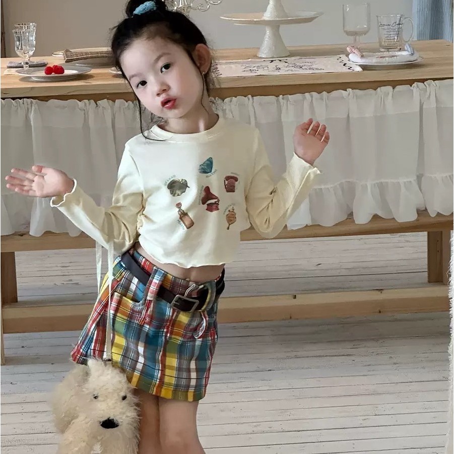 PRETTY BABY เสื้อแขนยาวเด็ก เสื้อทรงครอป สม็อคเอว ลายการ์ตูน (1714)