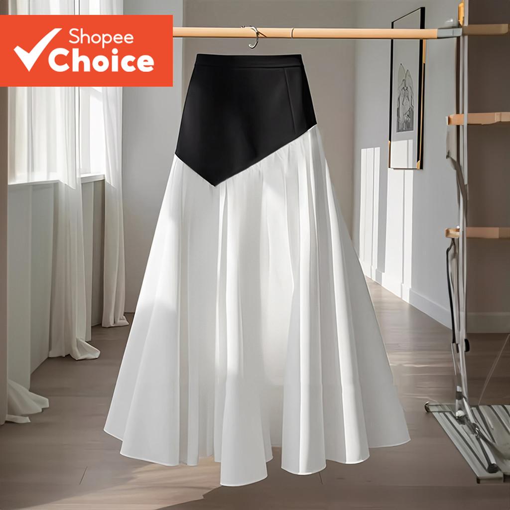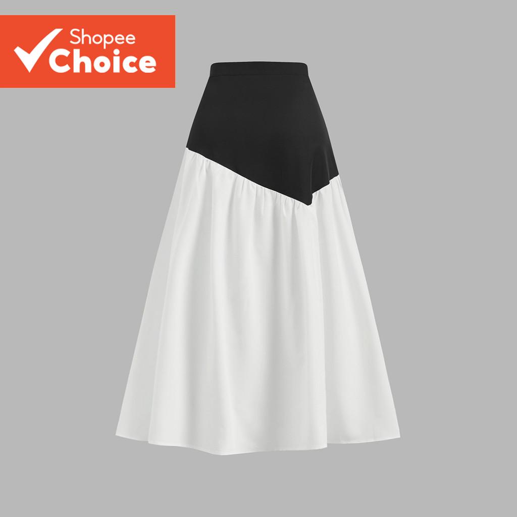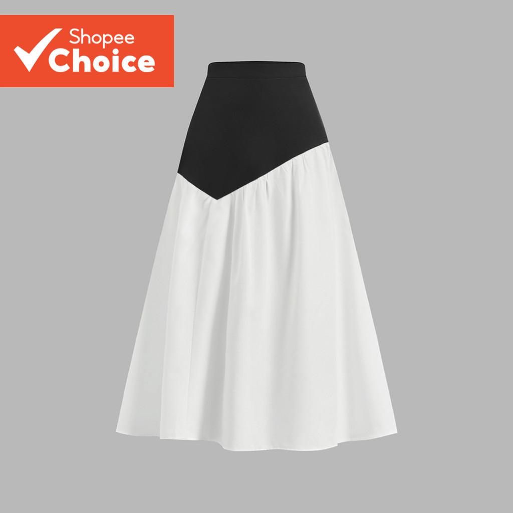 B129-APR25-B-1-กระโปรงทรงเอสีตัดกันสไตล์ลําลองสําหรับทํางานดูผอม-SKB129P2D040