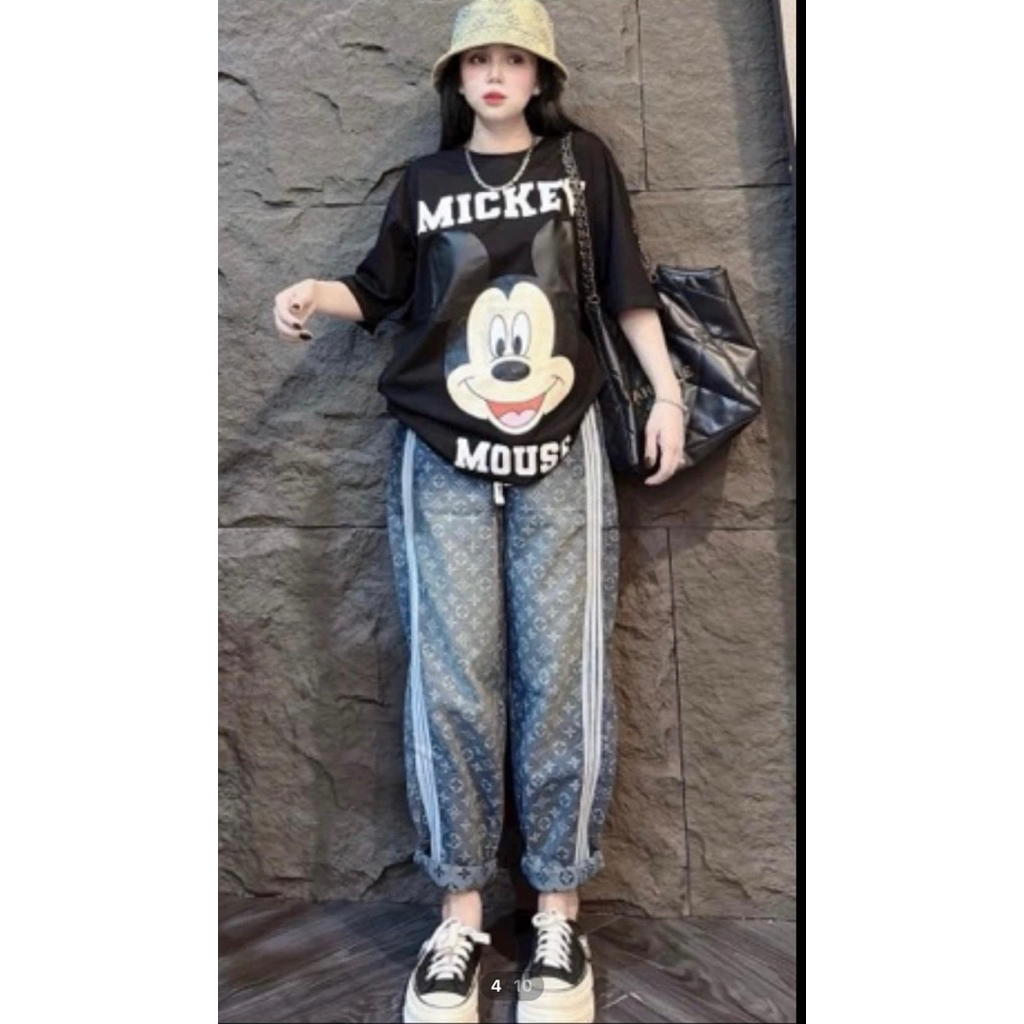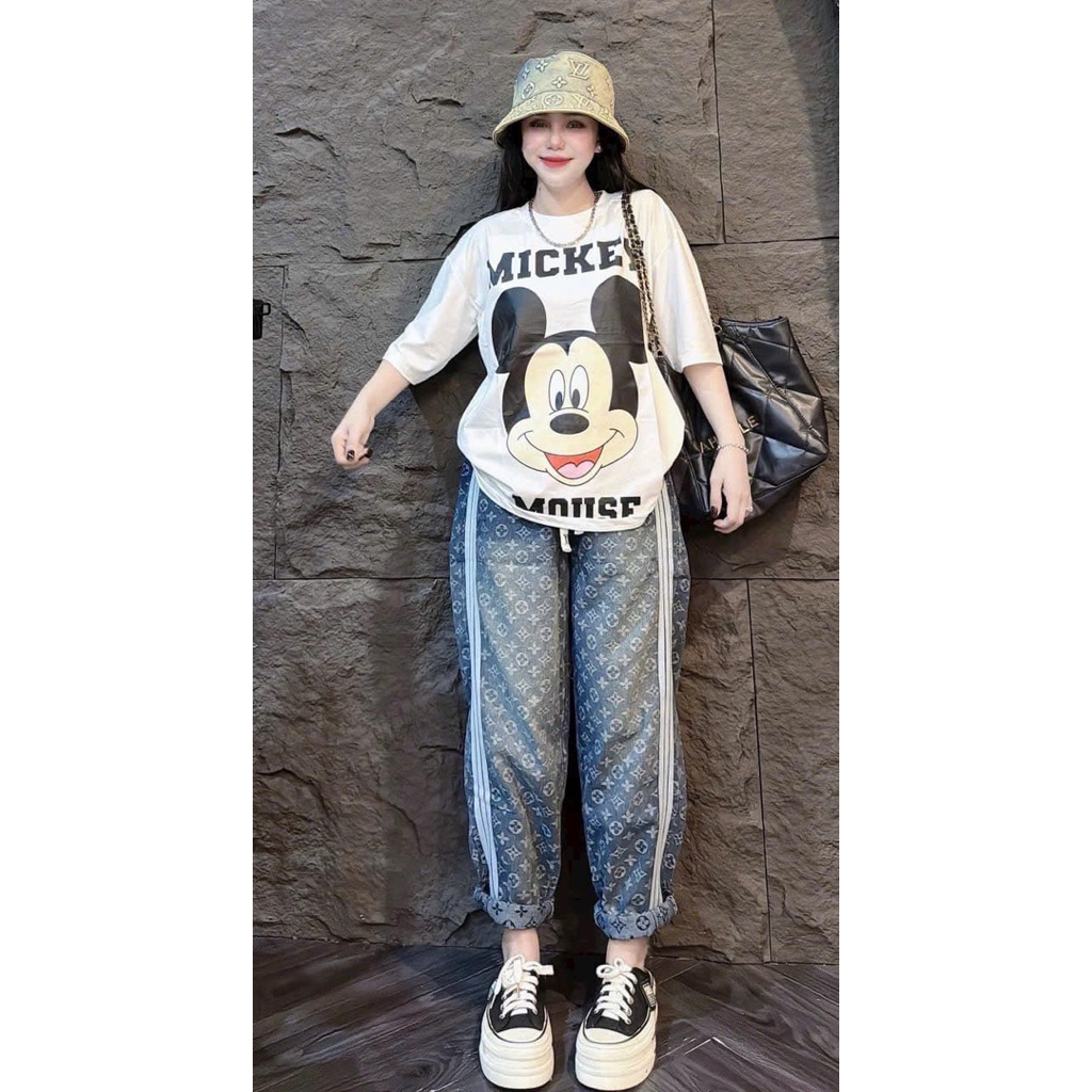 ชุดเซ็ต 2ชิ้น เสื้อยืดลายมิก กางเกงยีนส์ขายาว