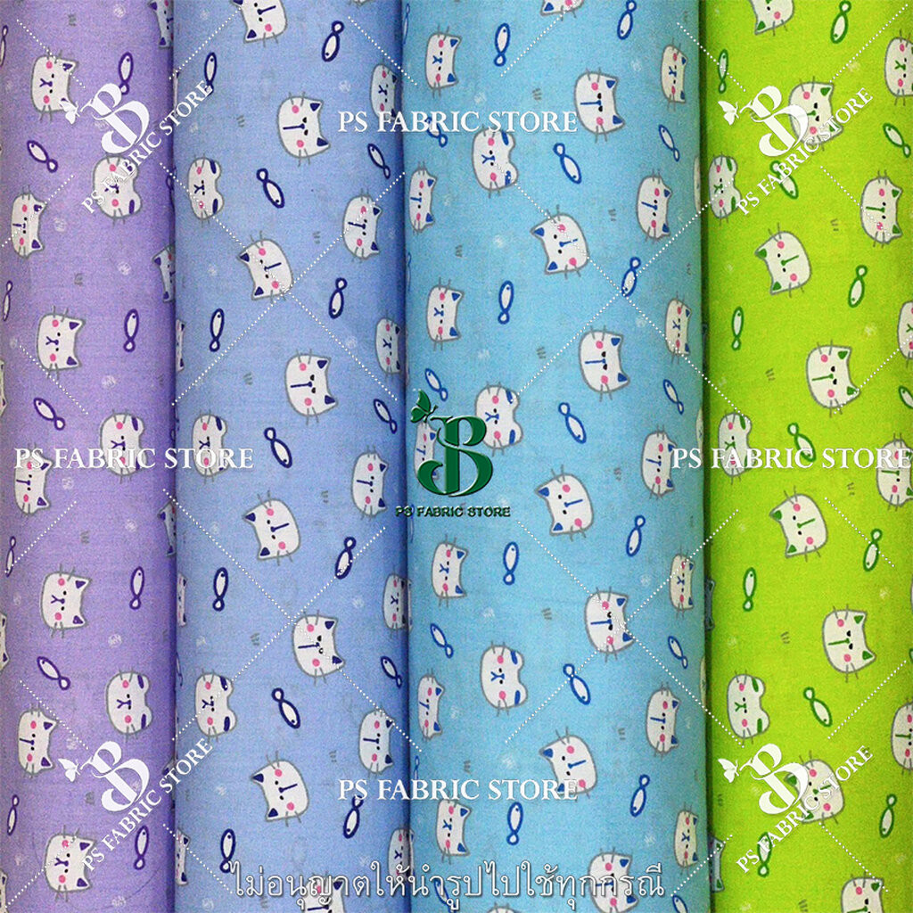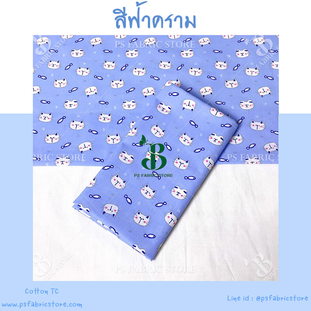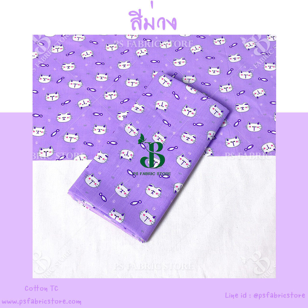 ผ้าเมตร ผ้าหลา ลายแมว COTTON TC ผ้าคอตตอนผสม ทีซี ตัดยาวต่อเนื่อง